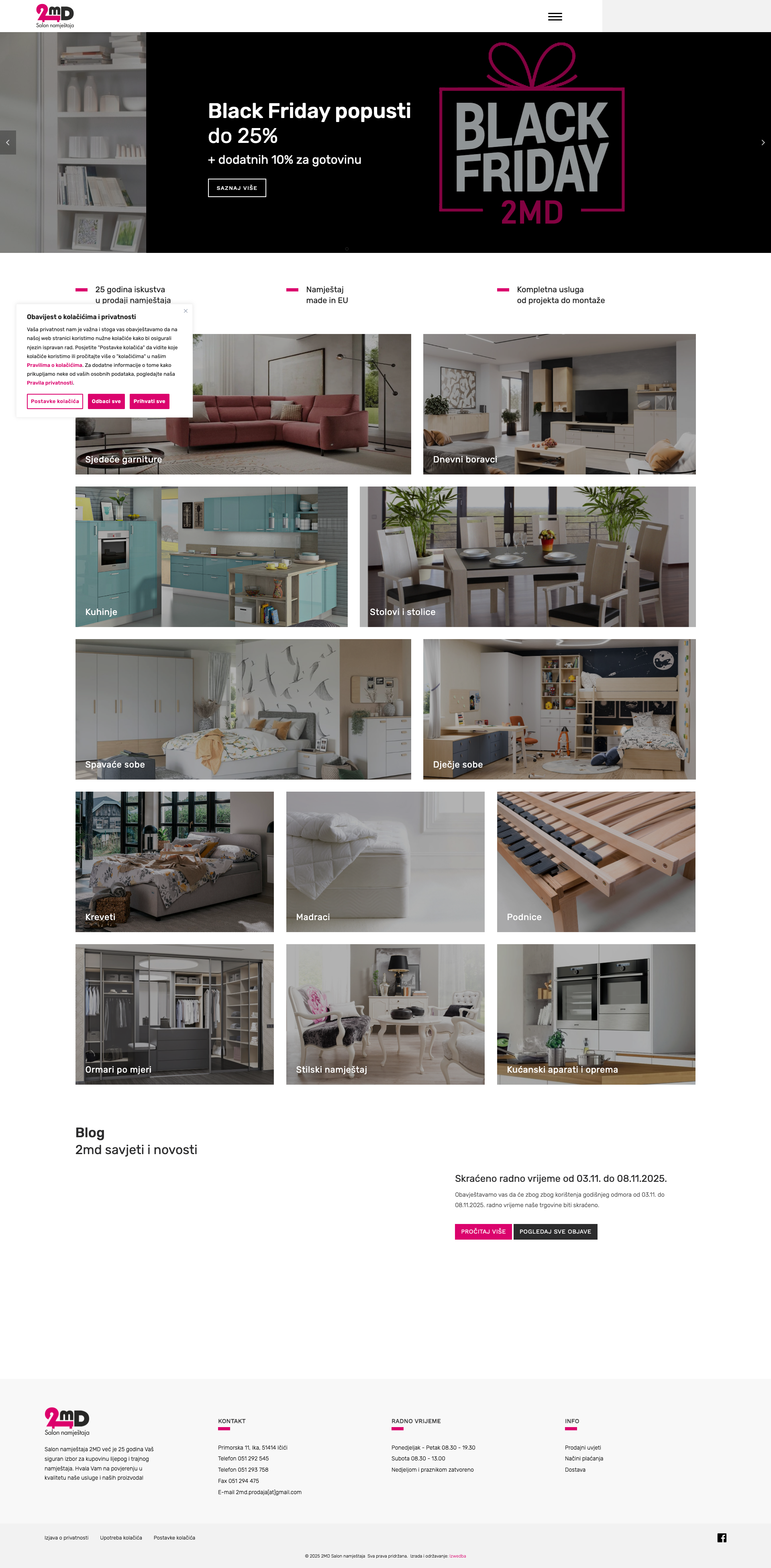 Salon namještaja 2MD već je 25 godina vaš siguran izbor za kupovinu lijepog i trajnog namještaja. Hvala vam na povjerenju u kvalitetu naše usluge i proizvoda!