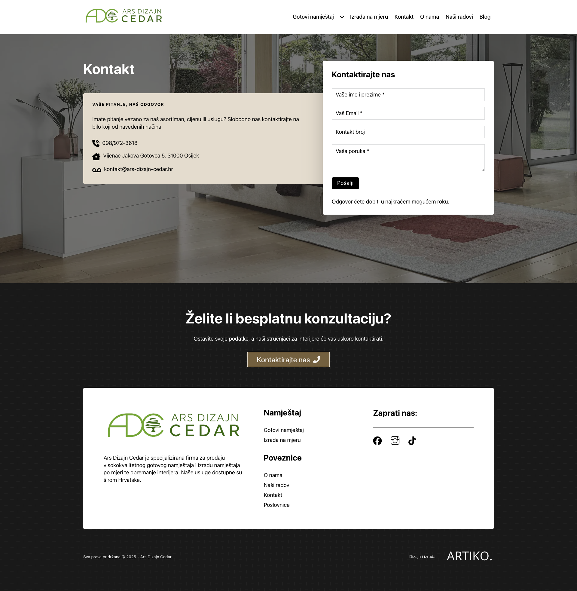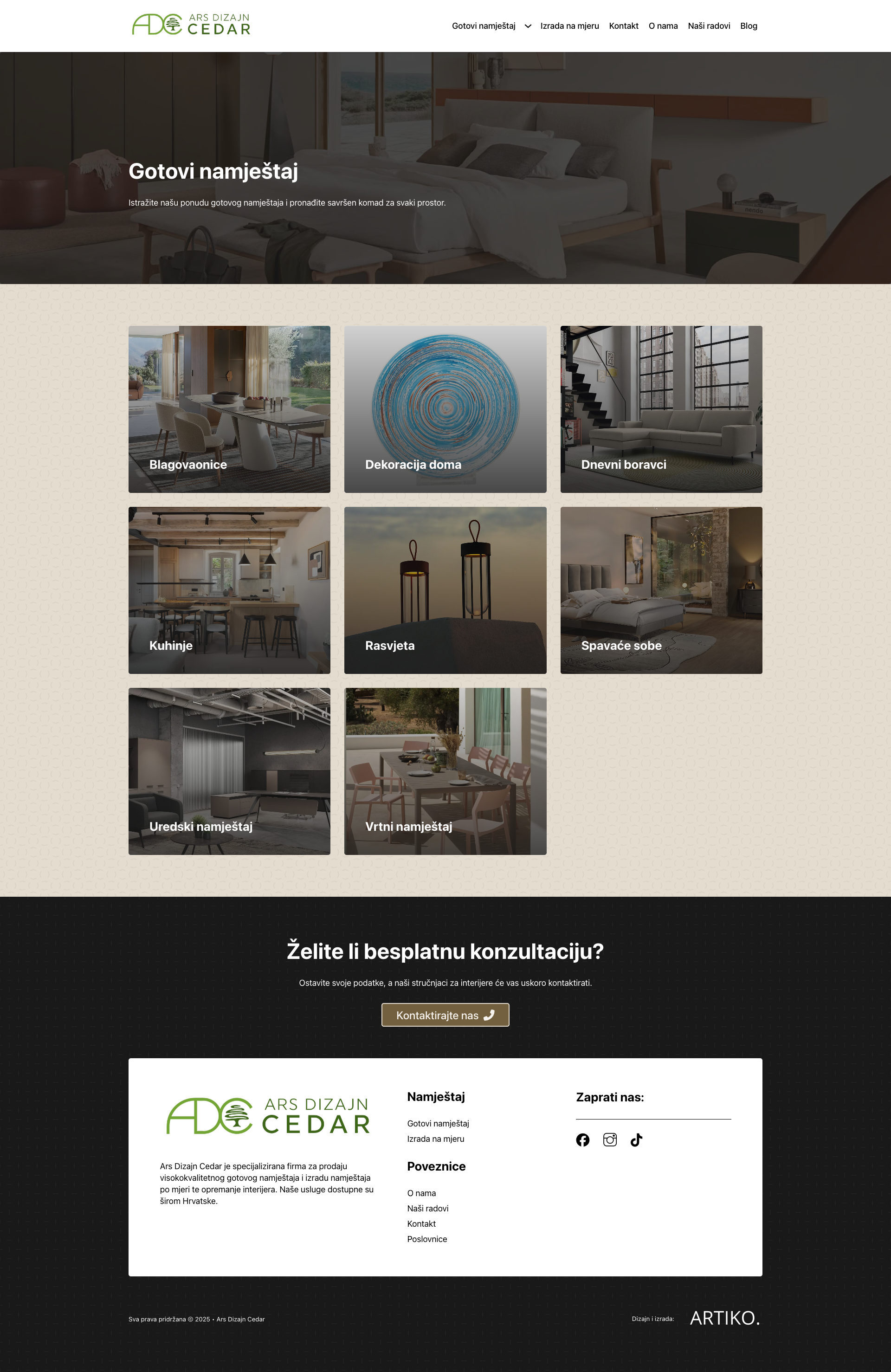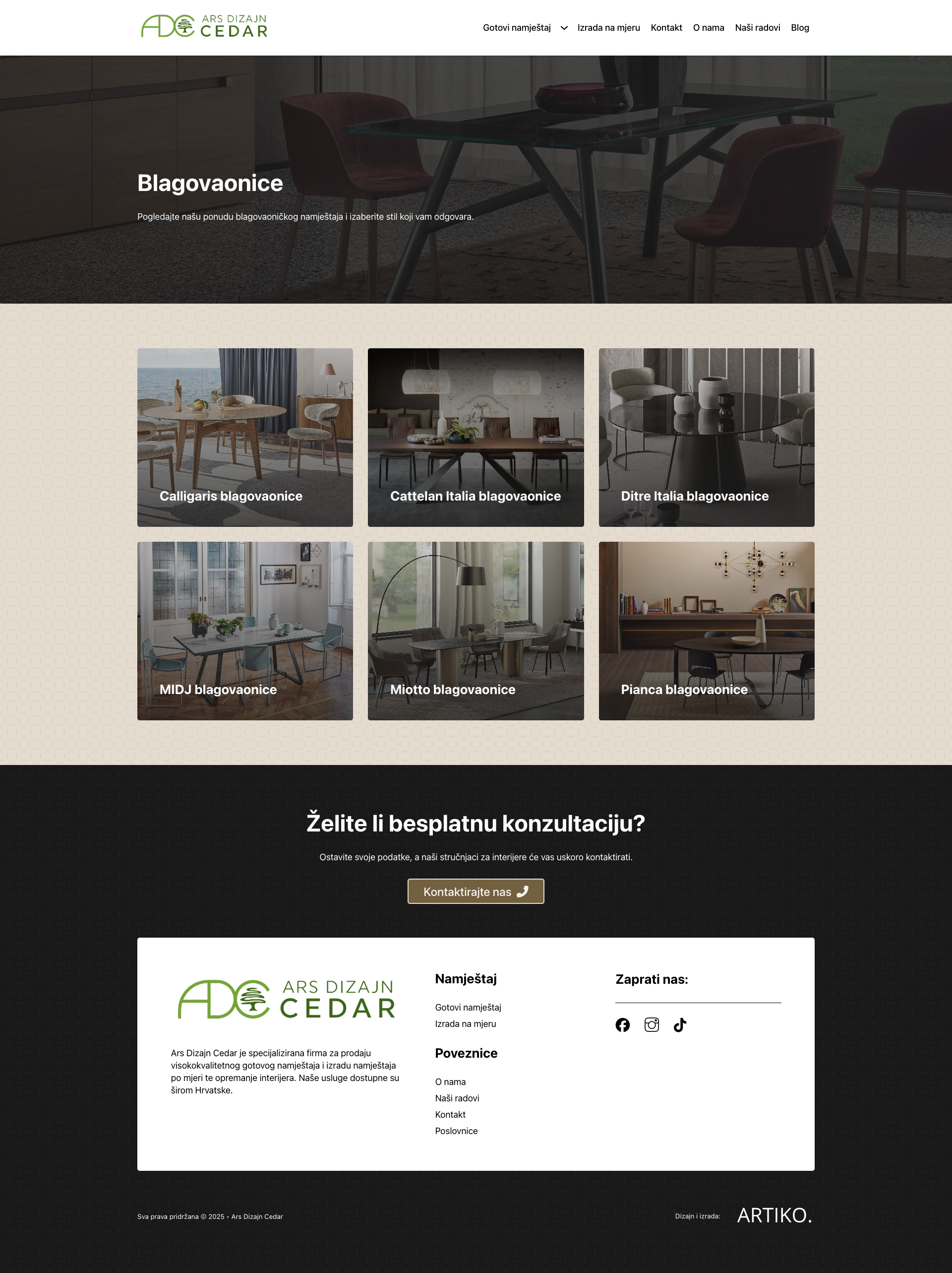 Ars Dizajn Cedar d.o.o., smješten u Osijeku, Hrvatska, vodeće je ime u prodaji visokokvalitetnog dizajnerskog namještaja i opremanju interijera. S više od 25 godina iskustva, Ars Dizajn Cedar d.o.o. surađuje s prestižnim talijanskim, njemačkim i slovenskim proizvođačima kako bi osigurao raznoliku ponudu za svaki dom.