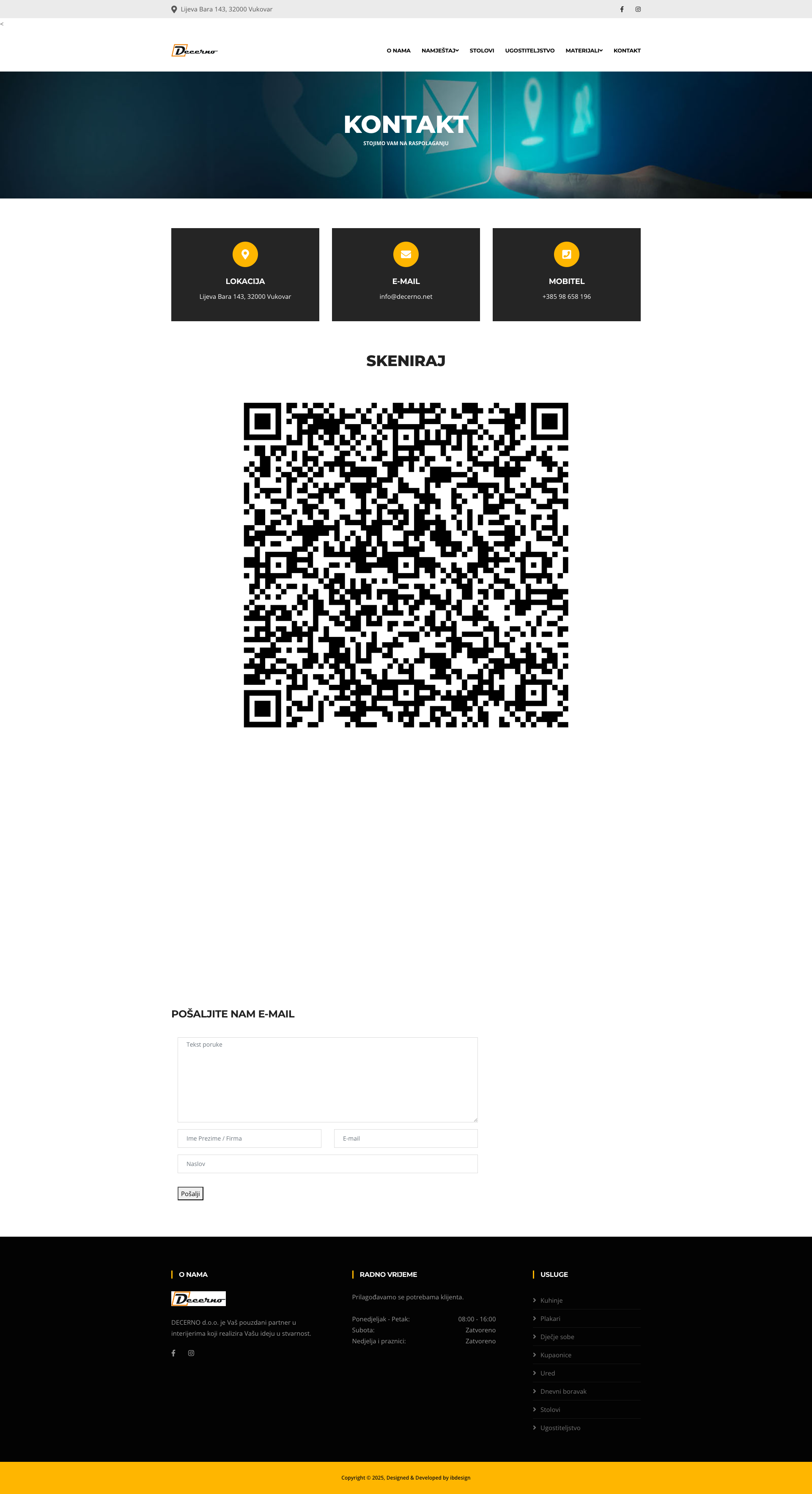 Podjetje se ističe po profesionalnosti, kvaliteti i odgovornosti u svakom projektu. Korištenjem visokokvalitetnih materijala kao što su iverali, Perfectsense MDF i masiv, DECERNO d.o.o. Vukovar jamči dugotrajnost i estetiku proizvoda. Kontaktirajte ih putem e-maila info@decerno.net ili telefona na +385 98 658 196 za personalizirane konzultacije i ponude. Posjetite njihovu web stranicu www.decerno.net za više informacija.