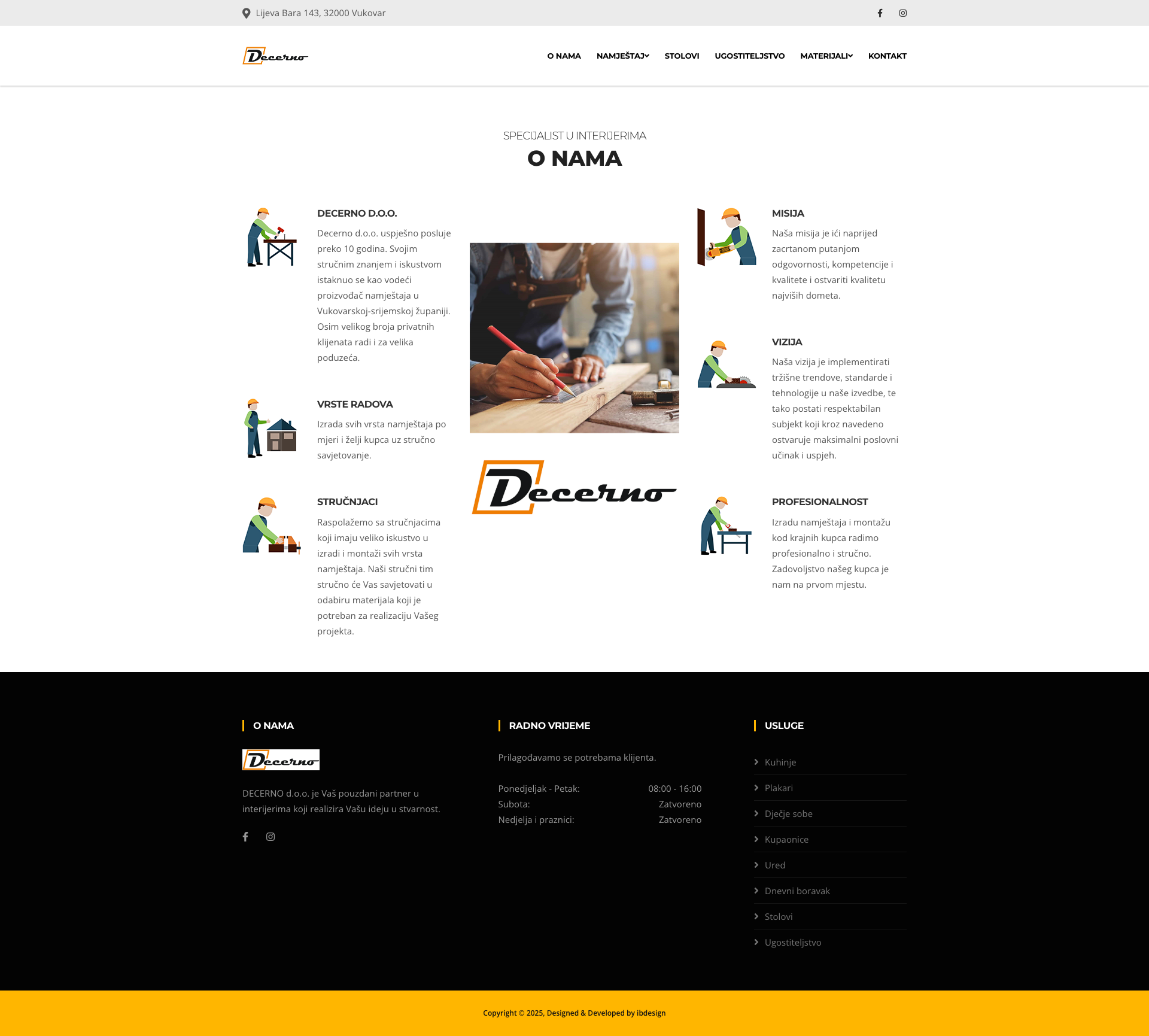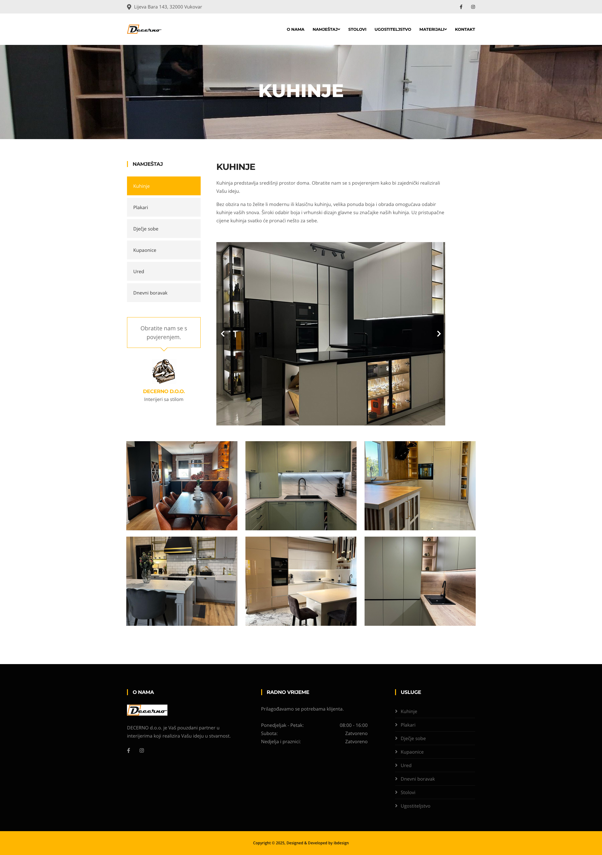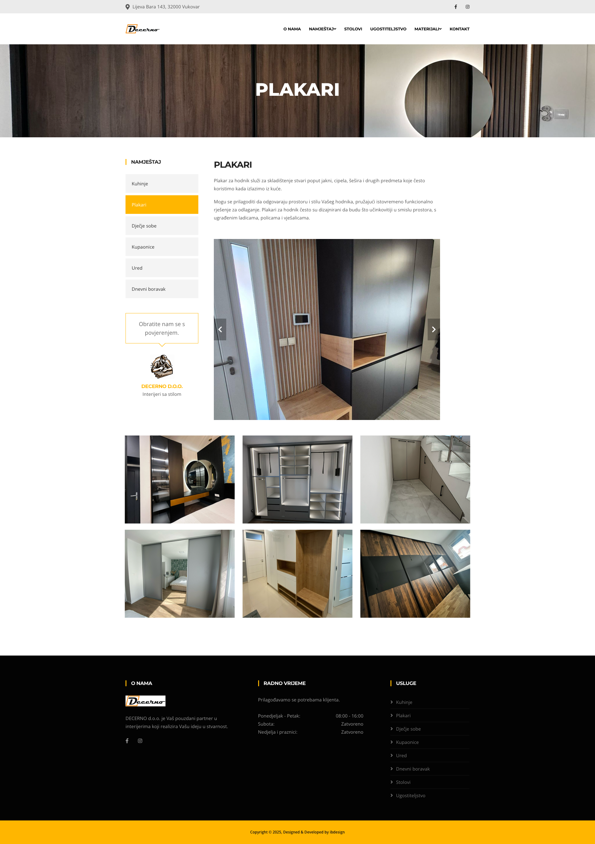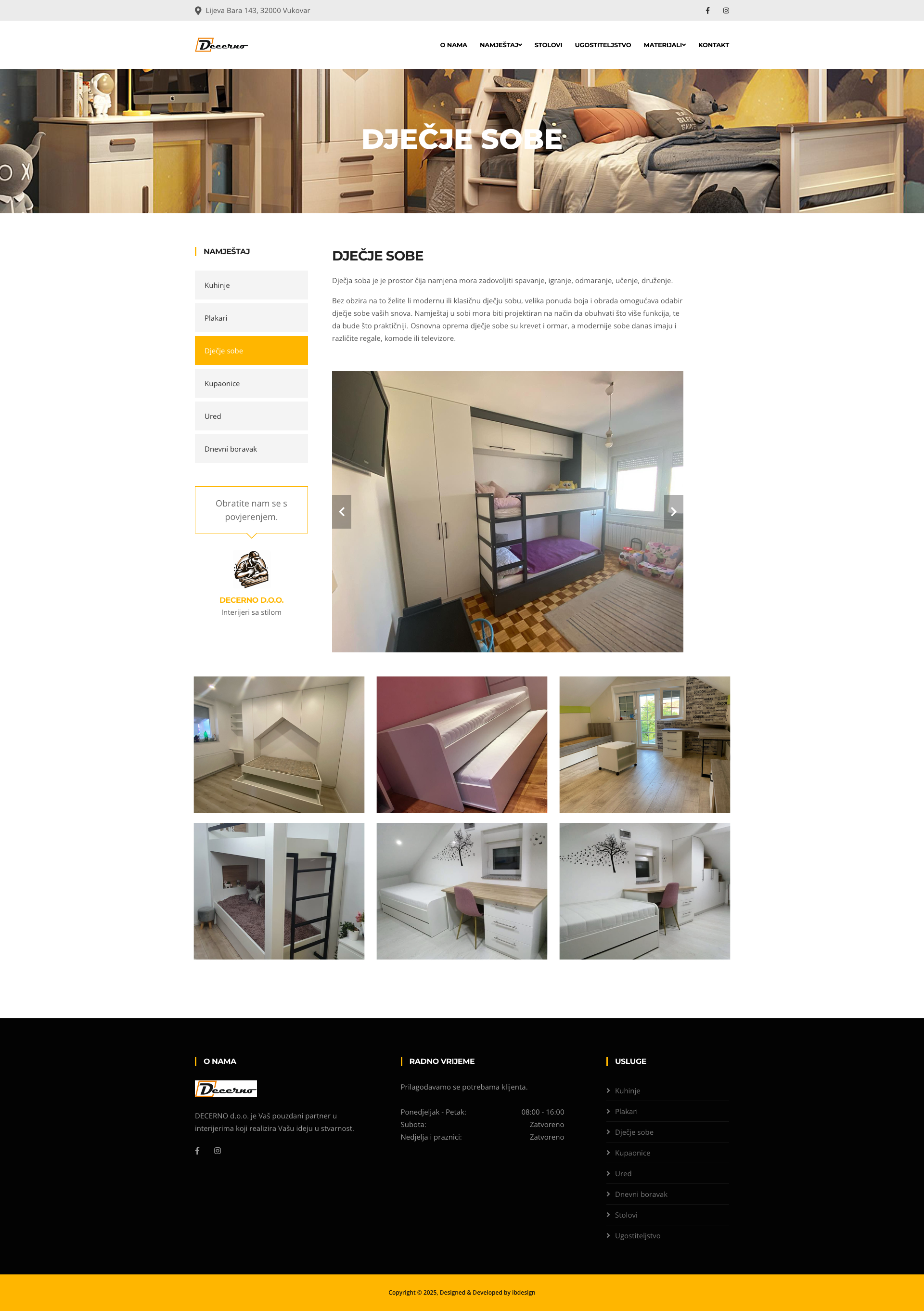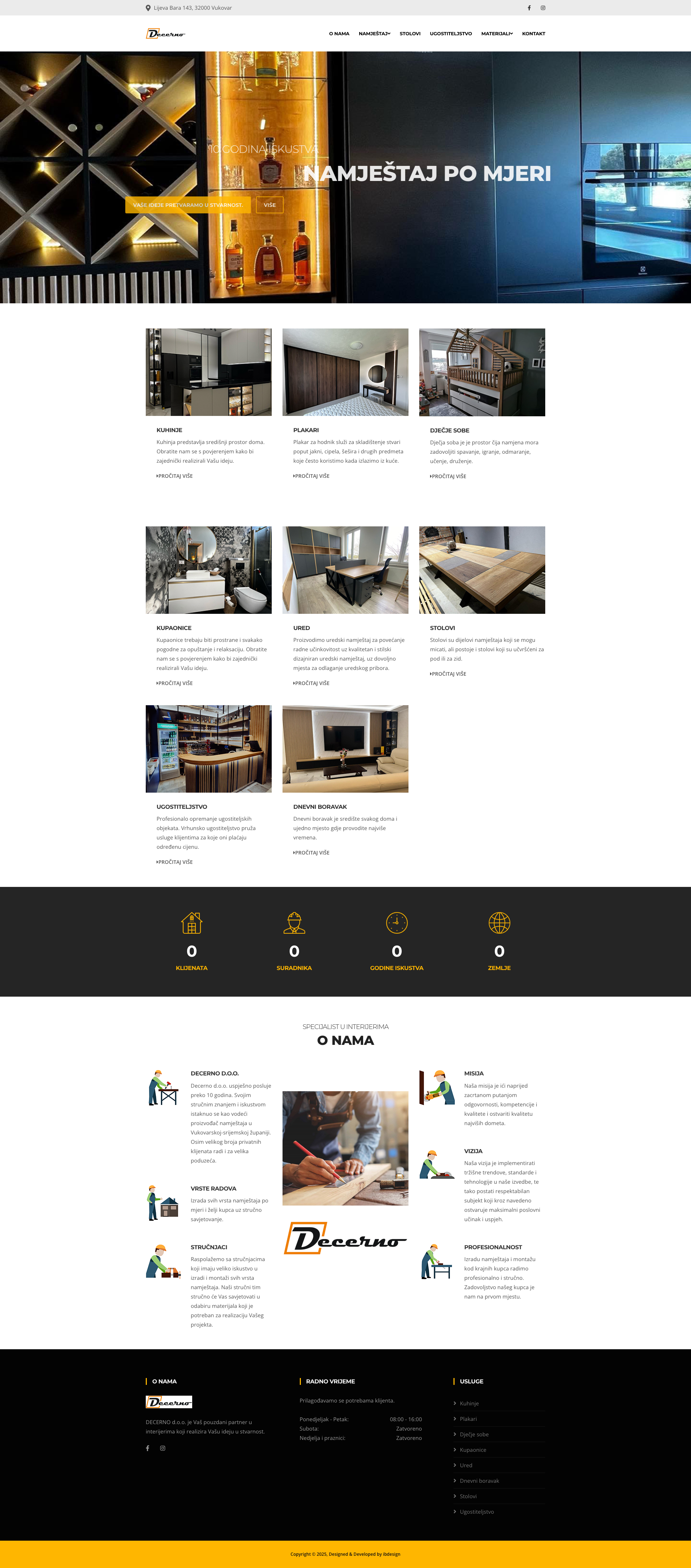DECERNO d.o.o. Vukovar specijalist je u izradi interijera s dugogodišnjim iskustvom u Vukovarsko-srijemskoj županiji. Smješten u Vukovaru, podjetje uspješno posluje više od deset godina, pružajući visokokvalitetne usluge izrade namještaja po mjeri. Sa stručnim timom i naprednim tehnologijama, DECERNO d.o.o. Vukovar osigurava da svaka ideja klijenata postane stvarnost.