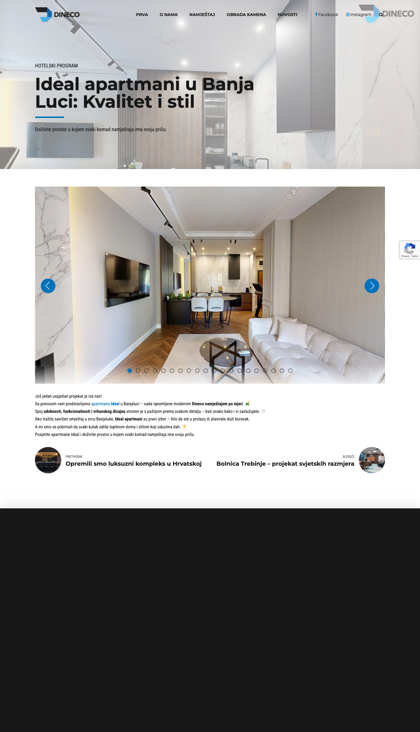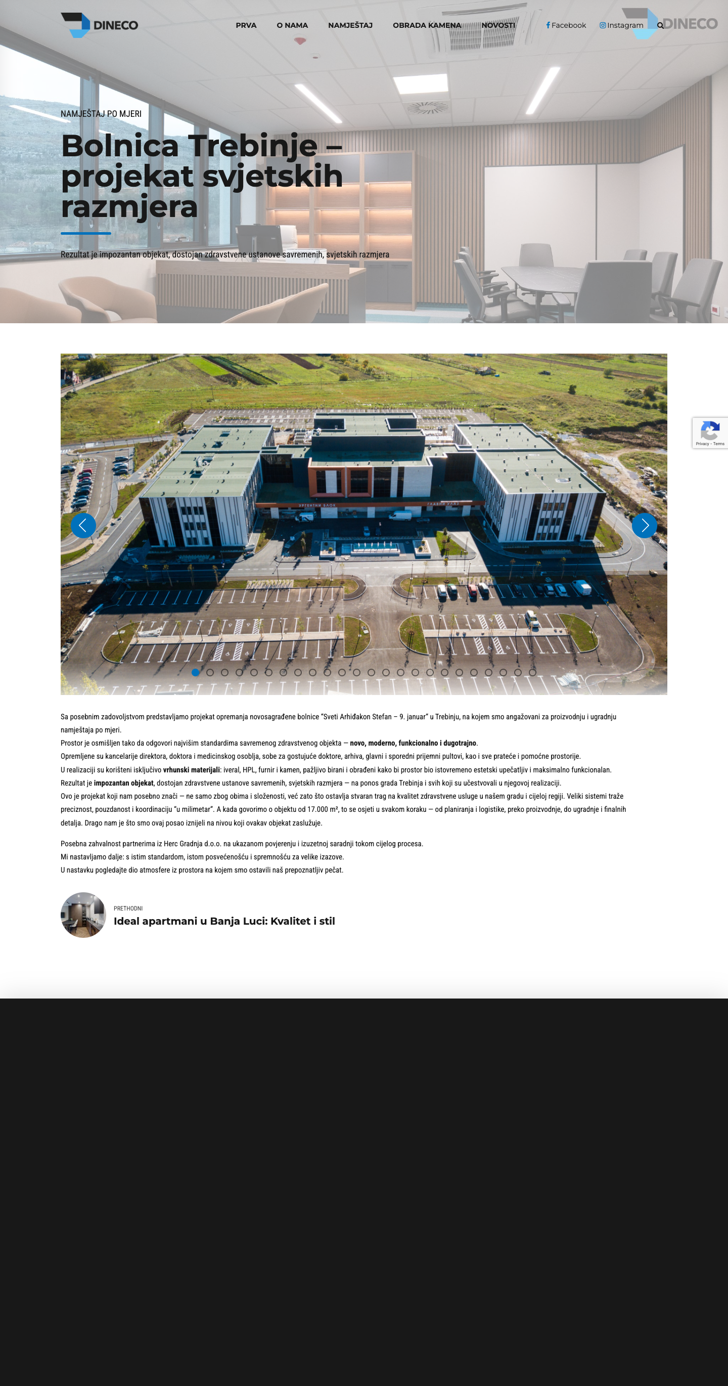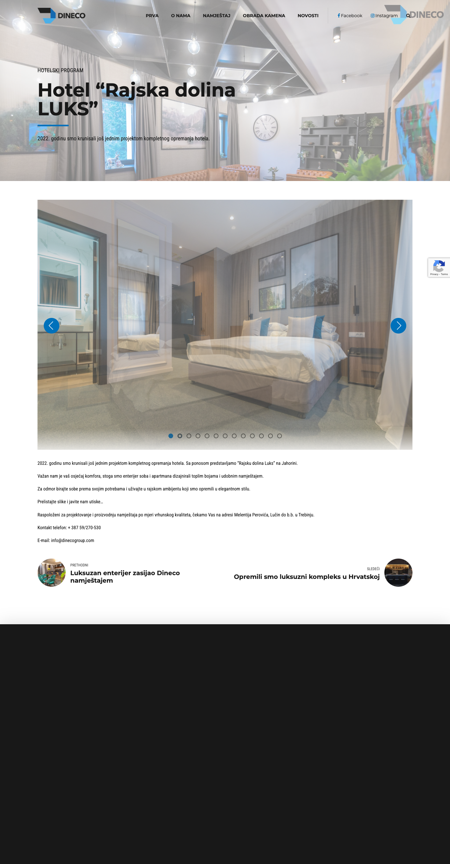 Dineco je uspješno realizirao projekte svjetskih razmjera, uključujući opremanje Bolnice Trebinje, Ideal apartmana u Banjoj Luci, luksuznog kompleksa u Savudriji (Hrvatska), te hotela "Rajska dolina LUKS". Naši projekti uključuju kompletno opremanje hotelskih objekata kvalitetnim namještajem koji odražava luksuz i funkcionalnost.Proizvodnja i Kvaliteta