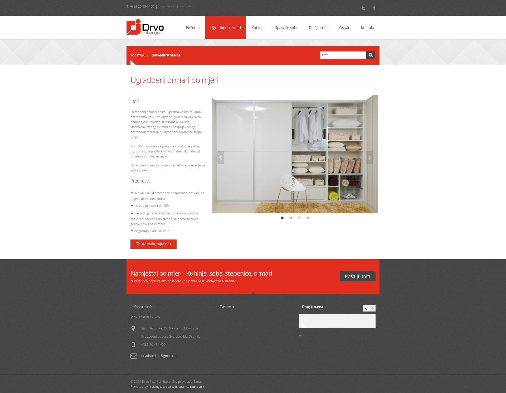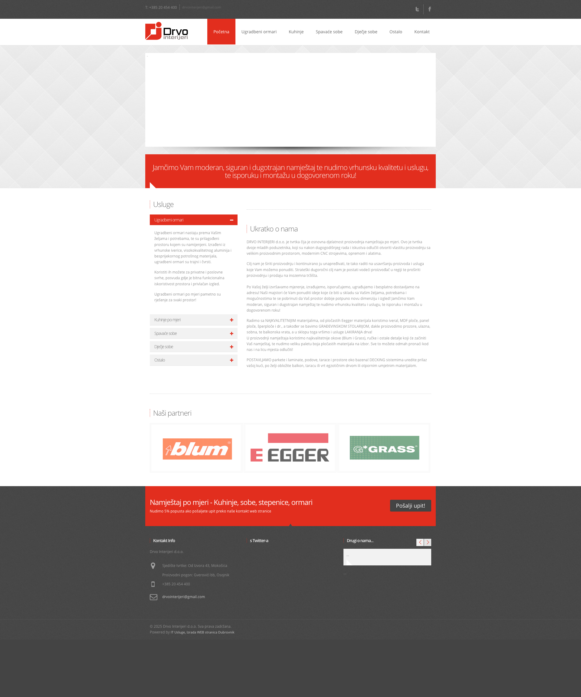 O podjetju Drvo Interijeri d.o.o. Izrada namještaja po mjeri: ugradbeni ormari, kuhinje...