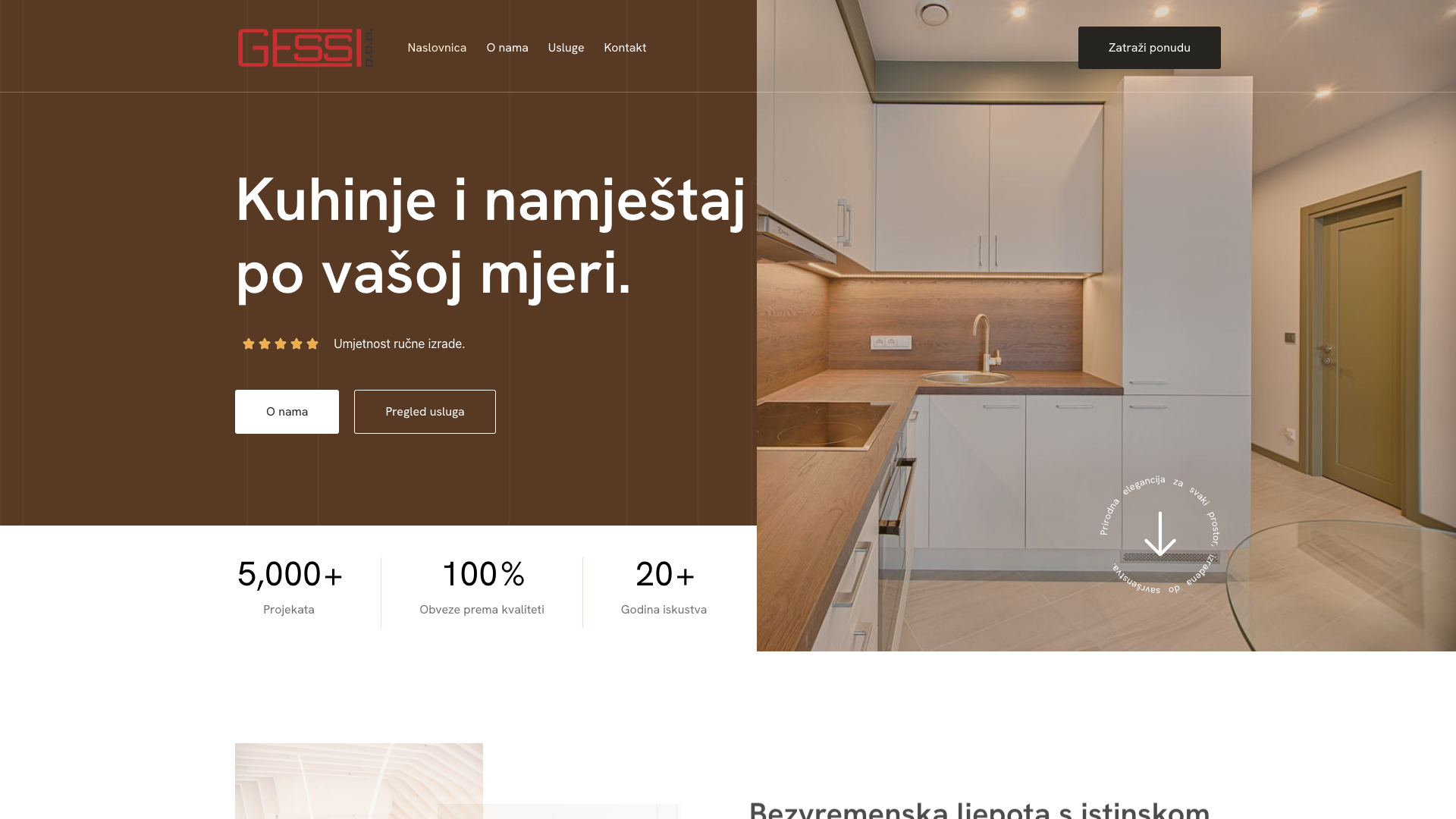 Gessi d.o.o. je vodeća hrvatska tvrtka specijalizirana za izradu kuhinja i namještaja po mjeri s više od 20 godina iskustva u struci. Od 2003. godine, ova pouzdan partner mnogim klijentima diljem Hrvatske i šire gradi reputaciju na temelju stručnosti, preciznosti i povjerenja kroz sve godine rada.Sveobuhvatne usluge izrade namještaja