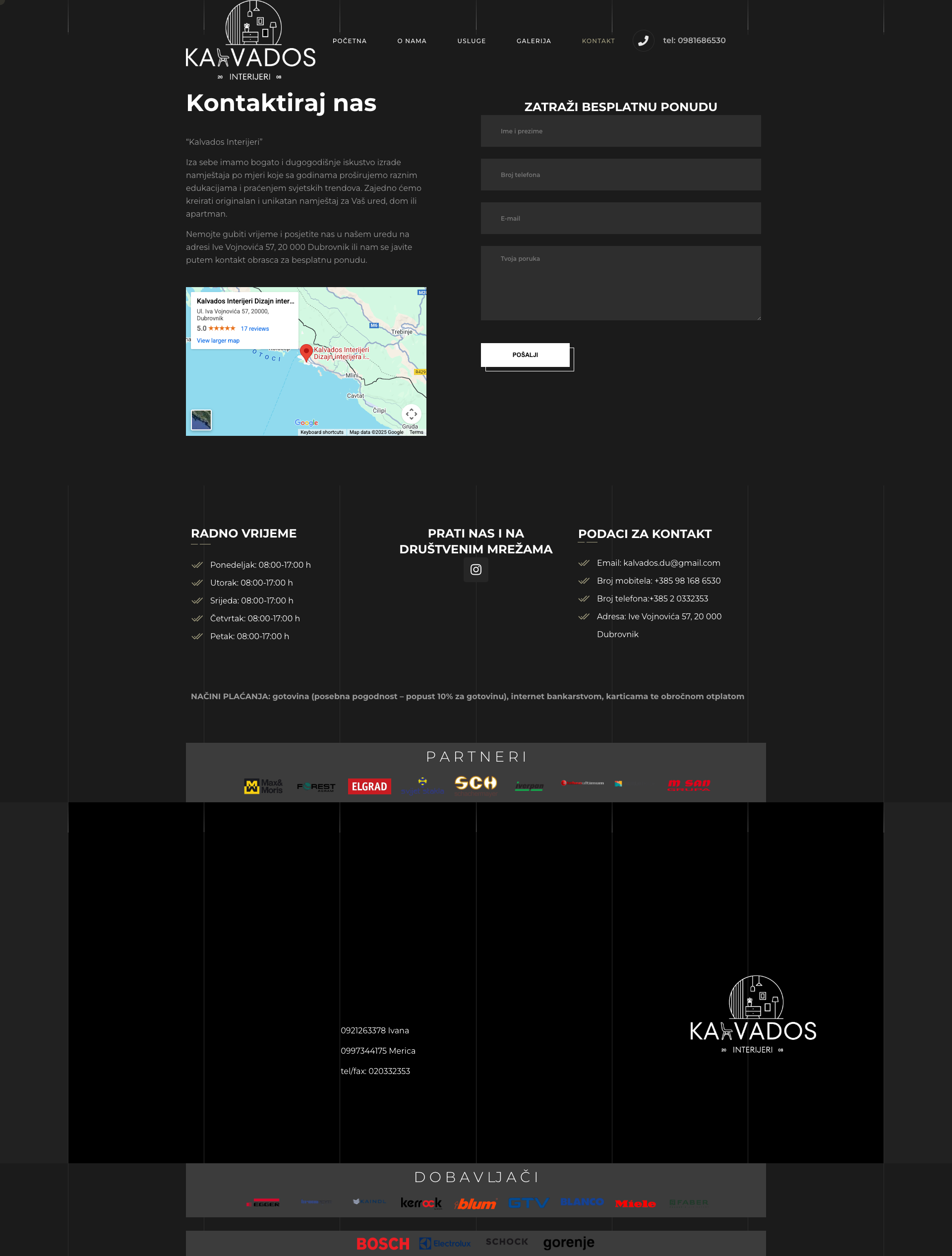 Kalvados Interijeri Dizajn interijera i Namještaj po mjeri, smješten u lijepom Dubrovniku u Hrvatskoj, više od 17 godina pruža vrhunske usluge u dizajnu interijera i proizvodnji namještaja po mjeri. S fokusom na kvalitetu, Kalvados Interijeri Dizajn interijera i Namještaj po mjeri koristi isključivo materijale vodećih proizvođača, što garantira dugotrajnost i zadovoljstvo klijenata.