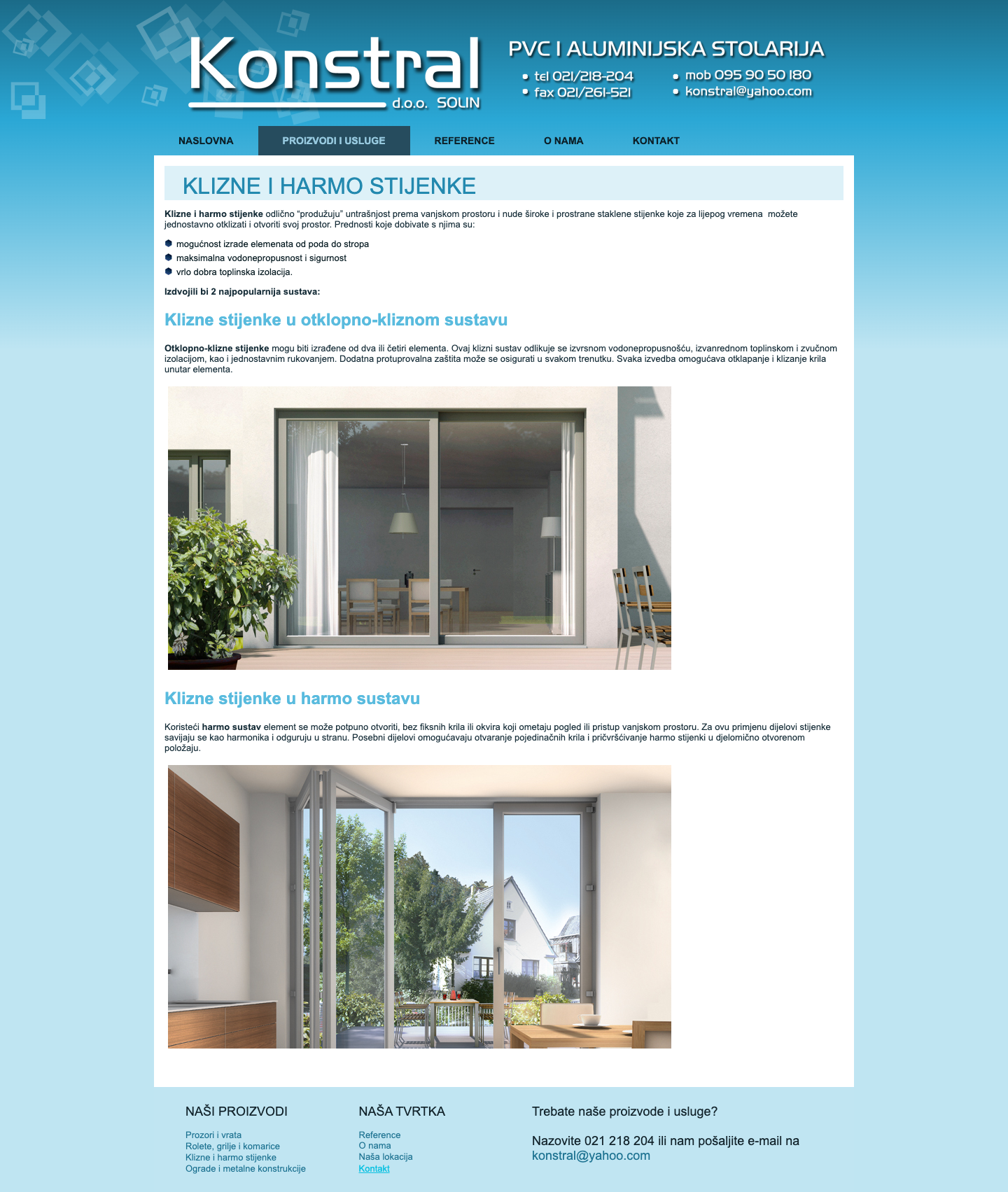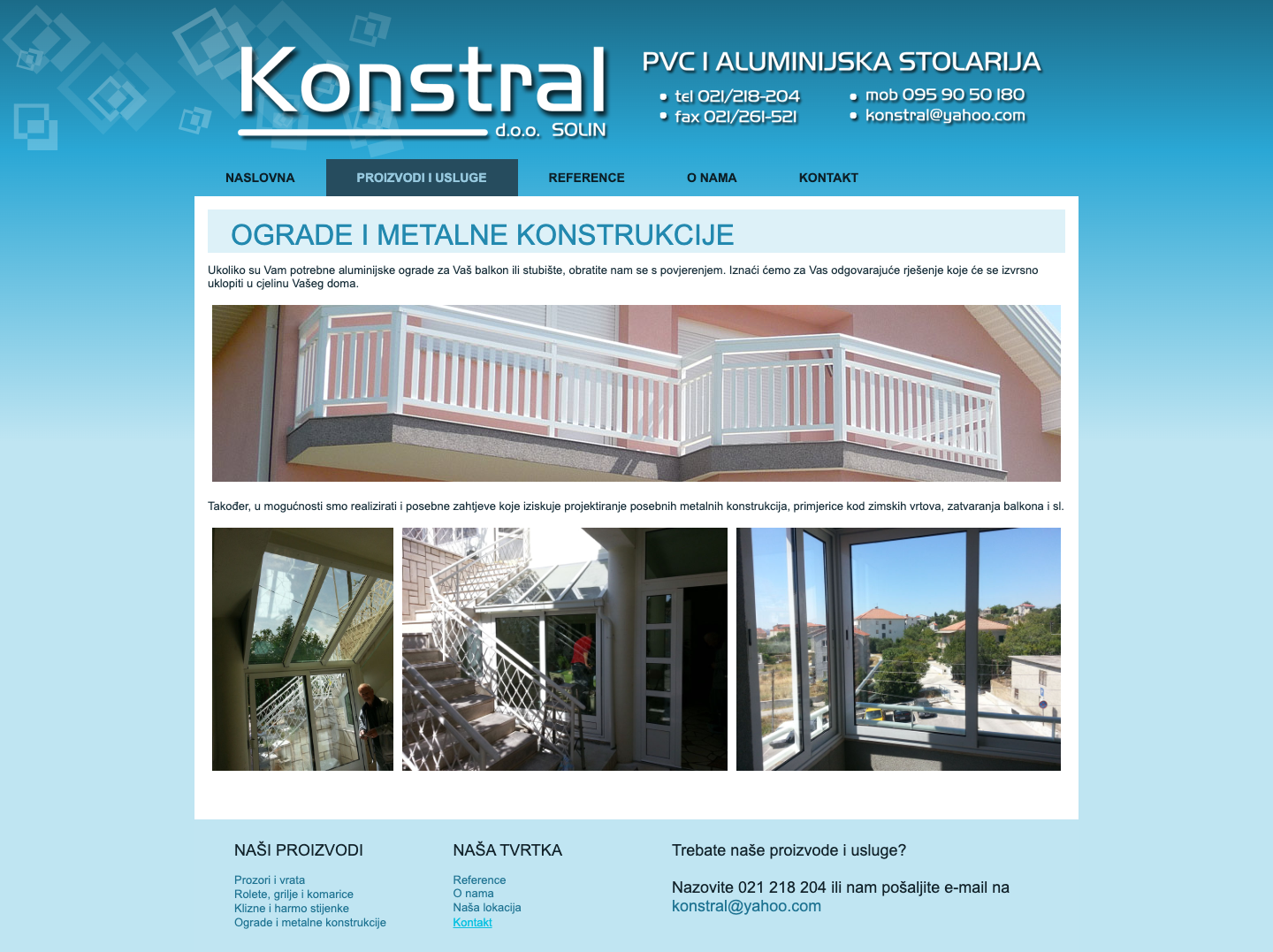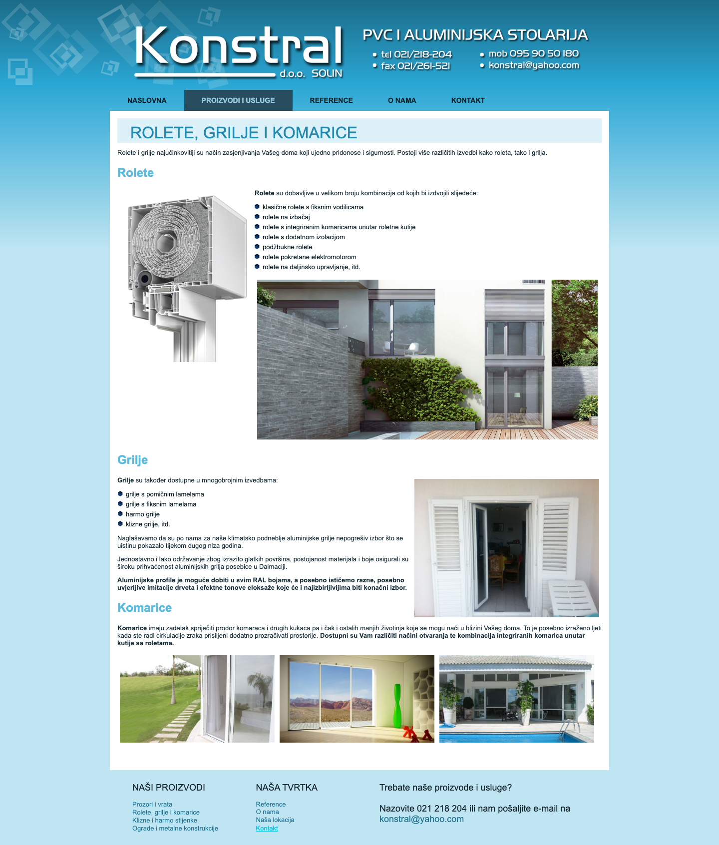 Nudimo rolete, grilje, komarice, klizne i harmo stijenke, ograde za balkone i stubišta te čelične i aluminijske konstrukcije.