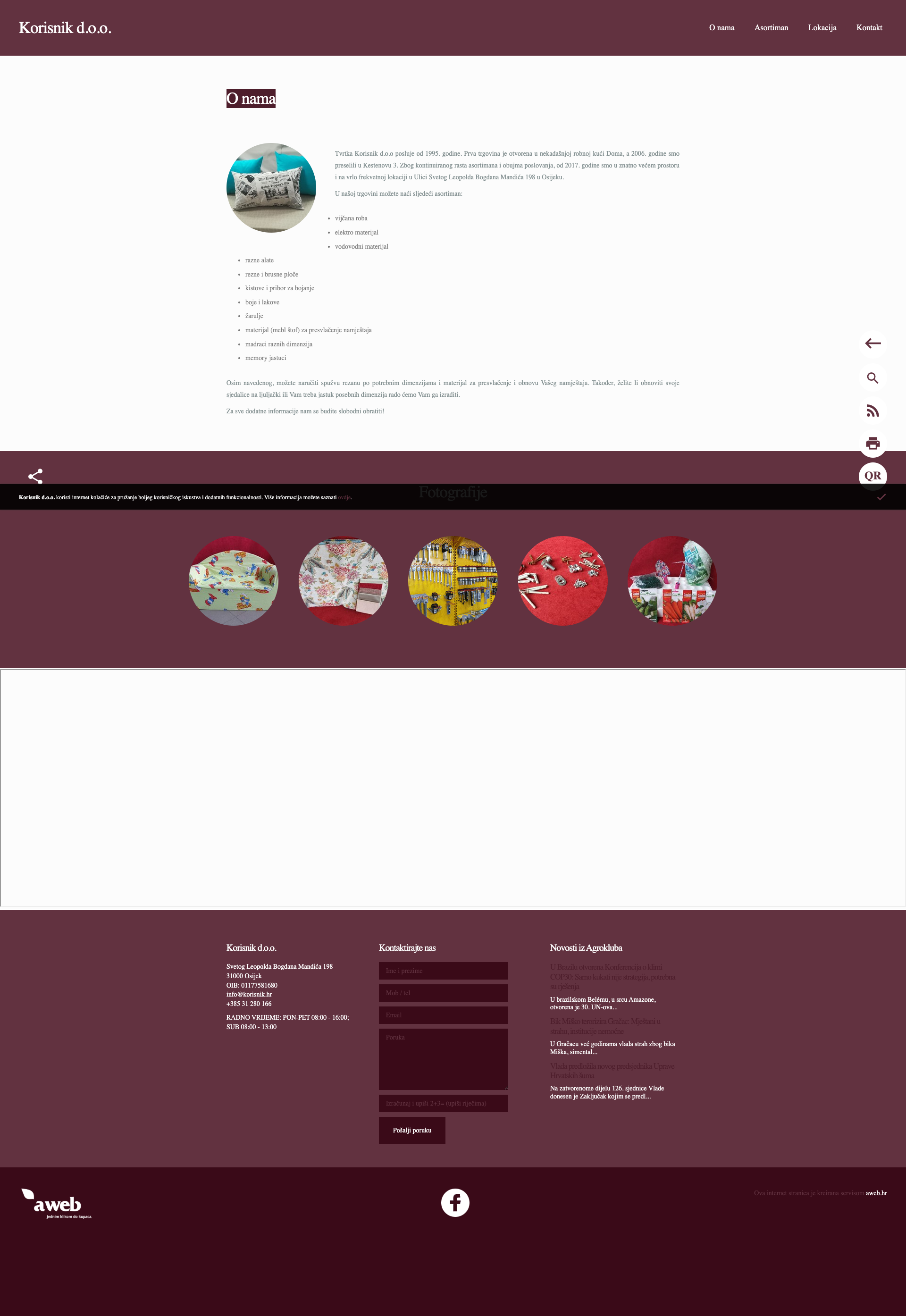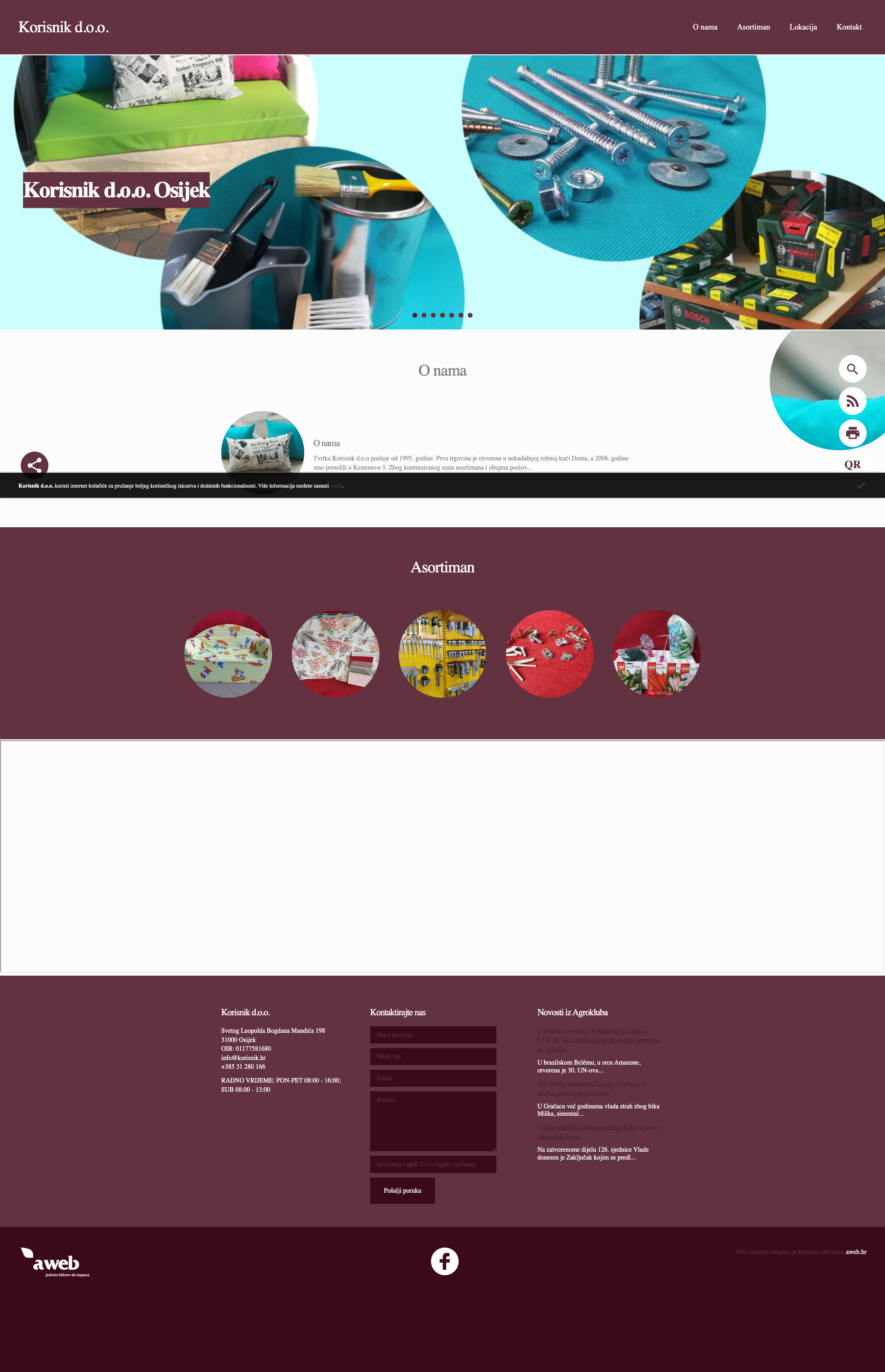 Tvrtka Korisnik d.o.o. iz Osijeka prodaje vijčanu robu, elektro i vodovodni materijal, alate, rezne i brusne ploče, kistove i probor za bojanje, boje i...