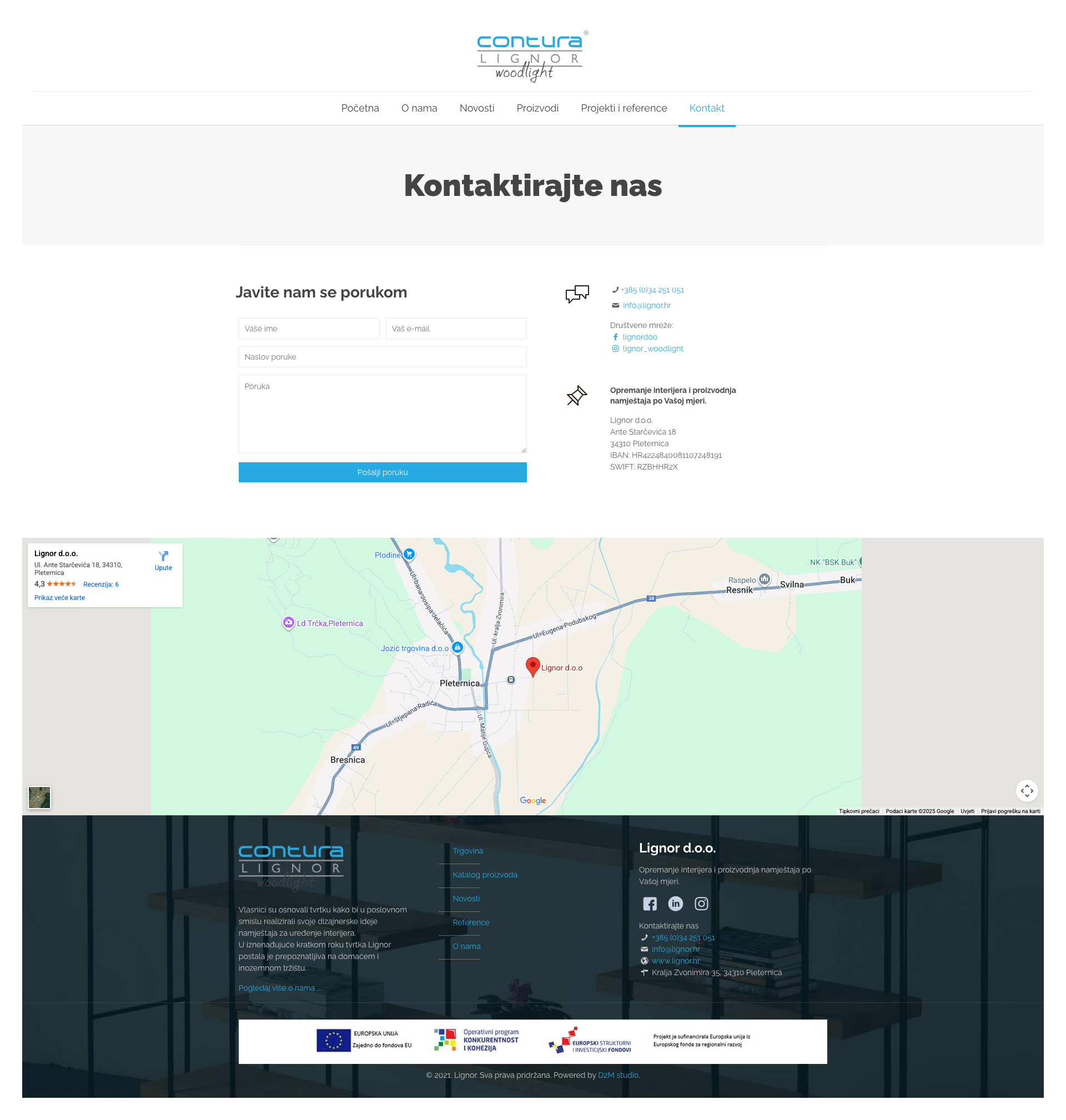 Lignor d.o.o. je renomirana tvrtka sa sjedištem u Pleternici, Hrvatska, specijalizirana za proizvodnju visokokvalitetnog drvenog namještaja, vrata i dizajnerskih rasvjetnih tijela. Osnovana 2011. godine, Lignor d.o.o. brzo je stekla prepoznatljivost na domaćem i inozemnom tržištu zahvaljujući svojoj posvećenosti suvremenim trendovima dizajna interijera i korištenju ekološki prihvatljivih materijala.