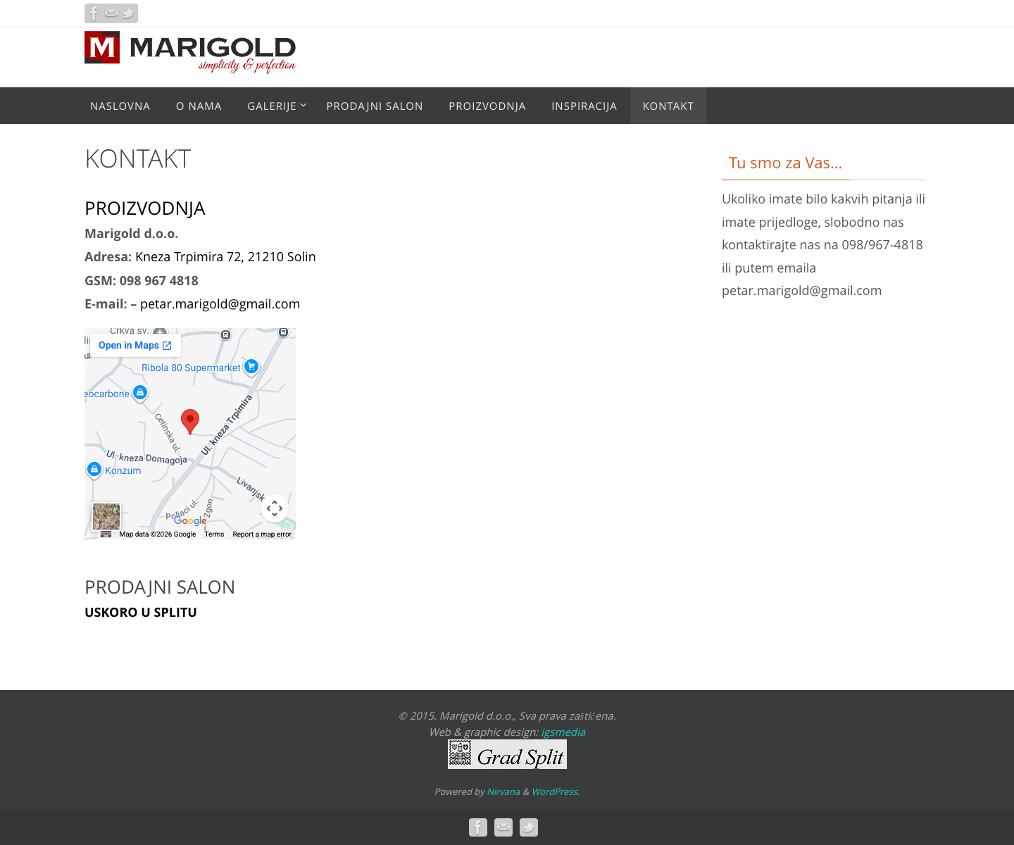 MARIGOLD d.o.o. je vodeća tvrtka za proizvodnju namještaja po mjeri sa sjedištem u Splitu na adresi Pujanke 18. Naš tim s preko deset godina iskustva u projektiranju i izradi namještaja donosi moderan dizajn i neupitnu kvalitetu za sve vaše potrebe opremanja prostora.Kompletan asortiman namještaja za dom