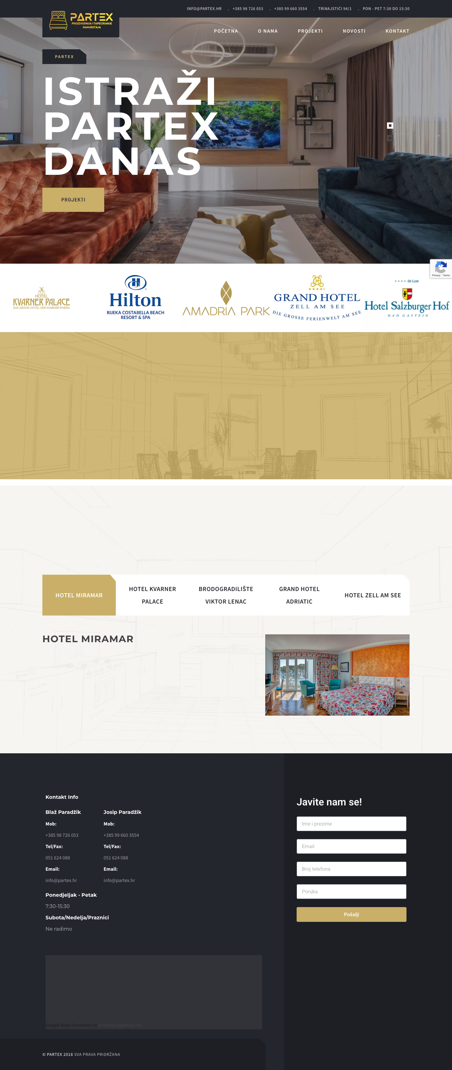 PARTEX je realizirao projekte za Hilton Rijeka, Grand Hotel Adriatic Opatija, Hotel Kvarner Palace, Hotel Miramar, Hotel Admiral i mnoge druge prestižne hotele.