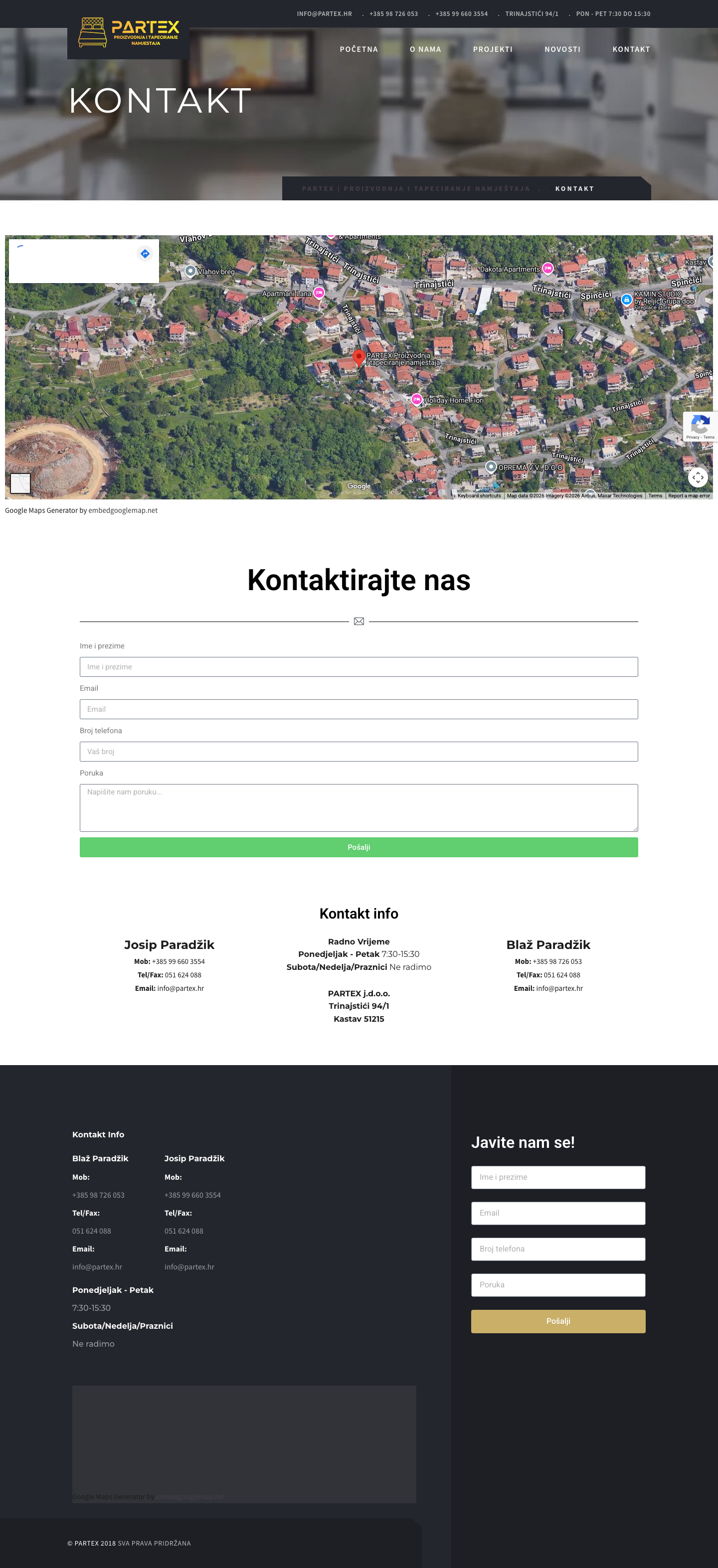 Možete kontaktirati Blaža Paradžika na +385 98 726 053, Josipa Paradžika na +385 99 660 3554 ili poslati email na info@partex.hr.