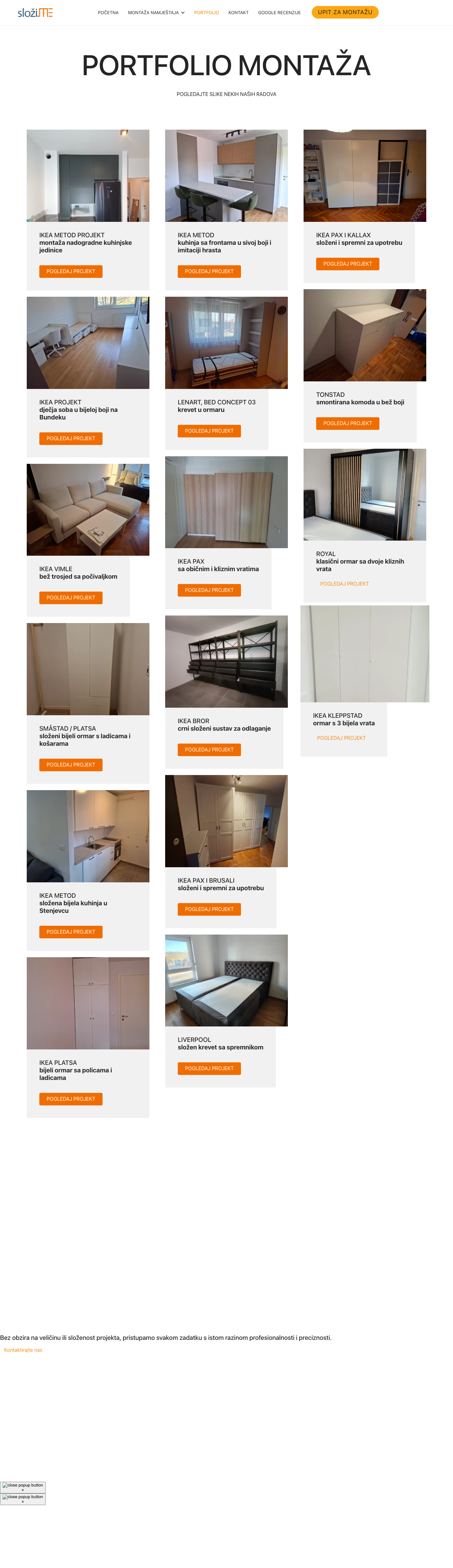 Nudimo kompletan spektar usluga montaže namještaja, uključujući montažu ormara, namještaj za dnevni boravak, kuhinje s radnim pločama, krevete i sofe. Specijalizirani smo za montažu IKEA PAX ormara, BESTÅ i PLATSA sustava. Sve usluge pružamo s punom garancijom i profesionalnim pristupom.Zašto odabrati Složi.ME
