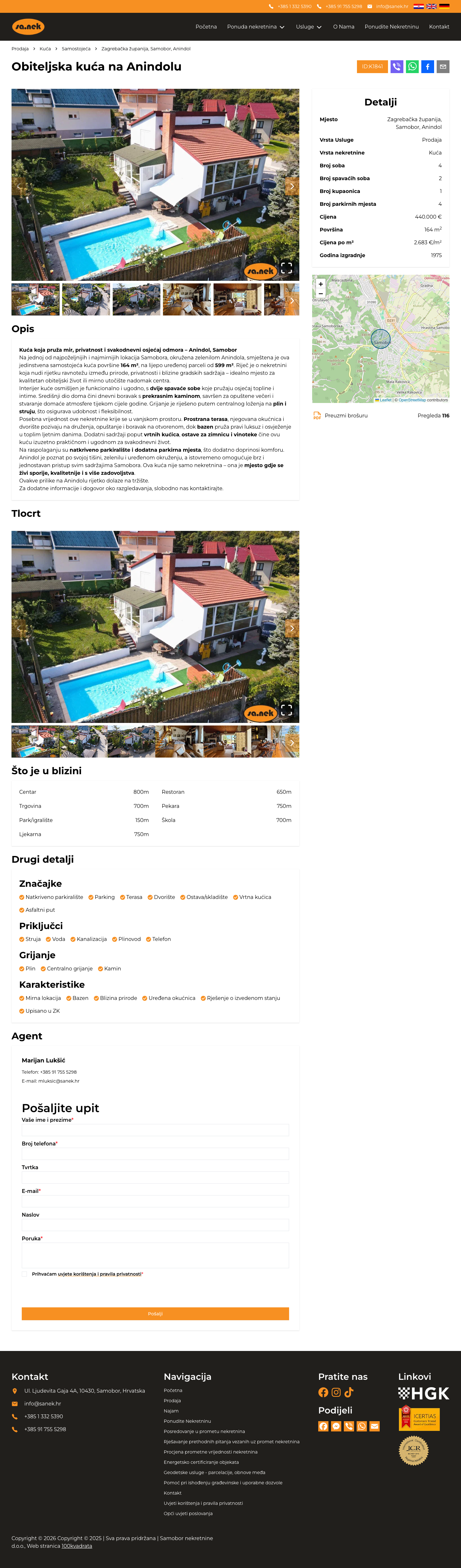 Sa.nek (Samobor Nekretnine d.o.o.) je renomirana agencija za nekretnine iz Samobora s dvadesetogodišnjim iskustvom....