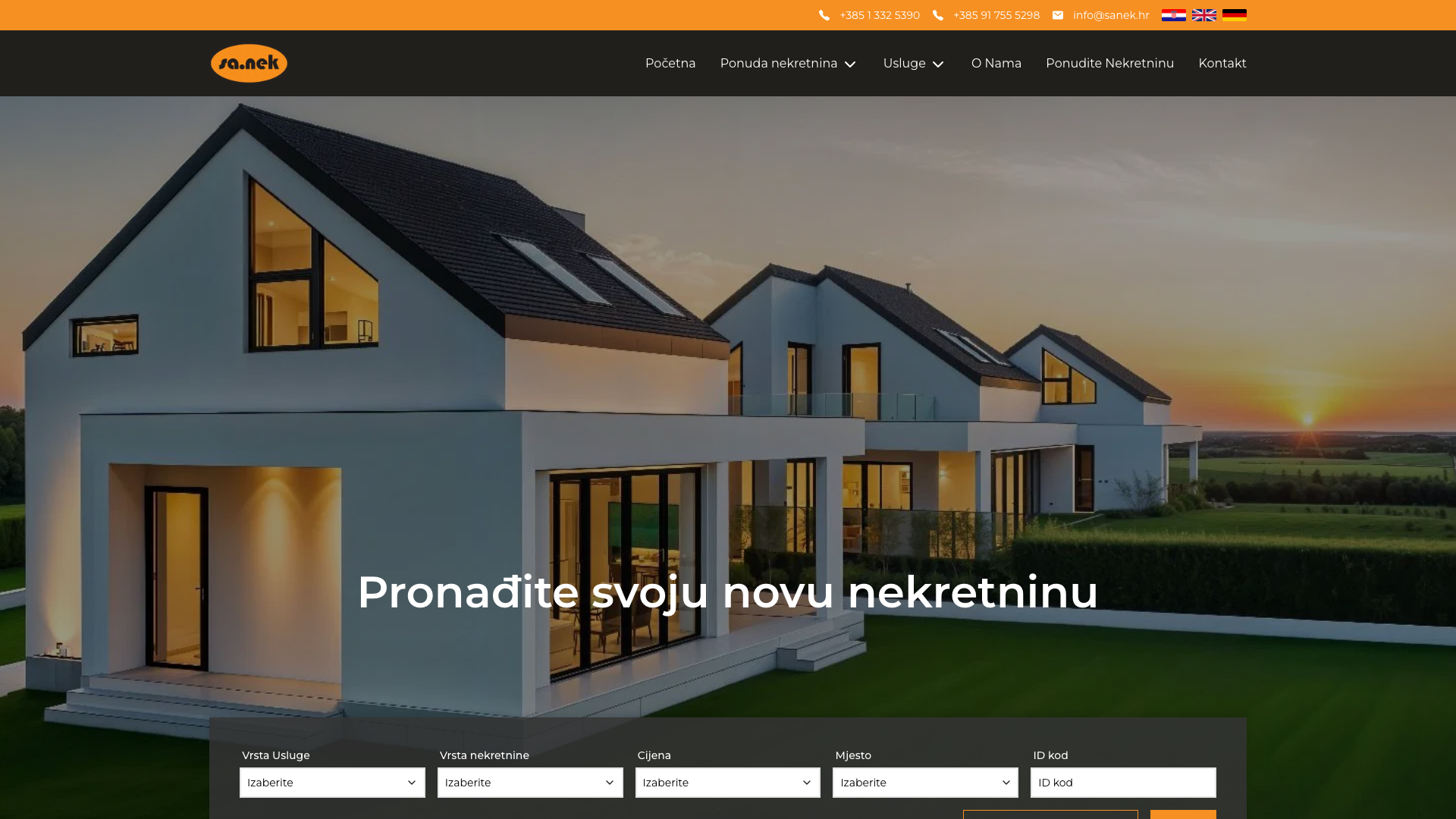 Sa.nek nudi nekretnine diljem Republike Hrvatske i u susjednim zemljama, ali većina ponude je s područja Samobora, Zagreba, Jastrebarskog i ostatka Zagrebačke županije.