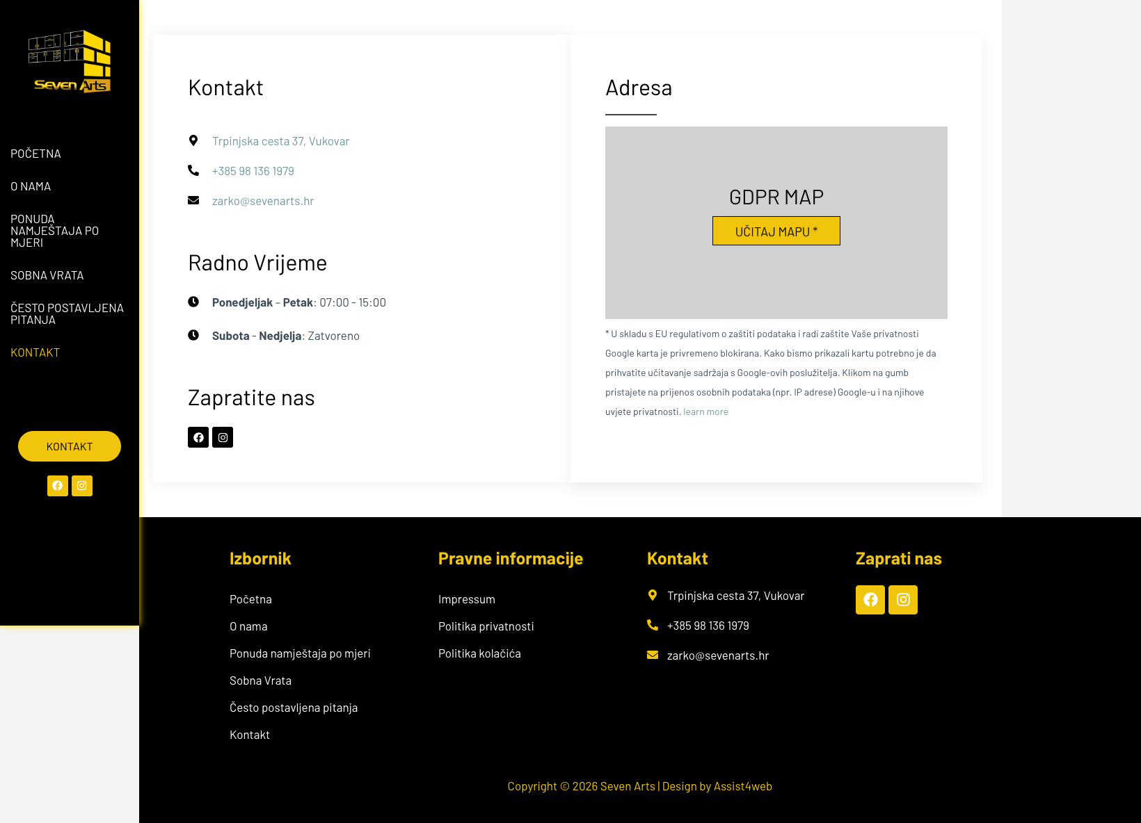 Možete nas kontaktirati na telefon +385 98 136 1979 ili email zarko@sevenarts.hr za besplatne konzultacije.