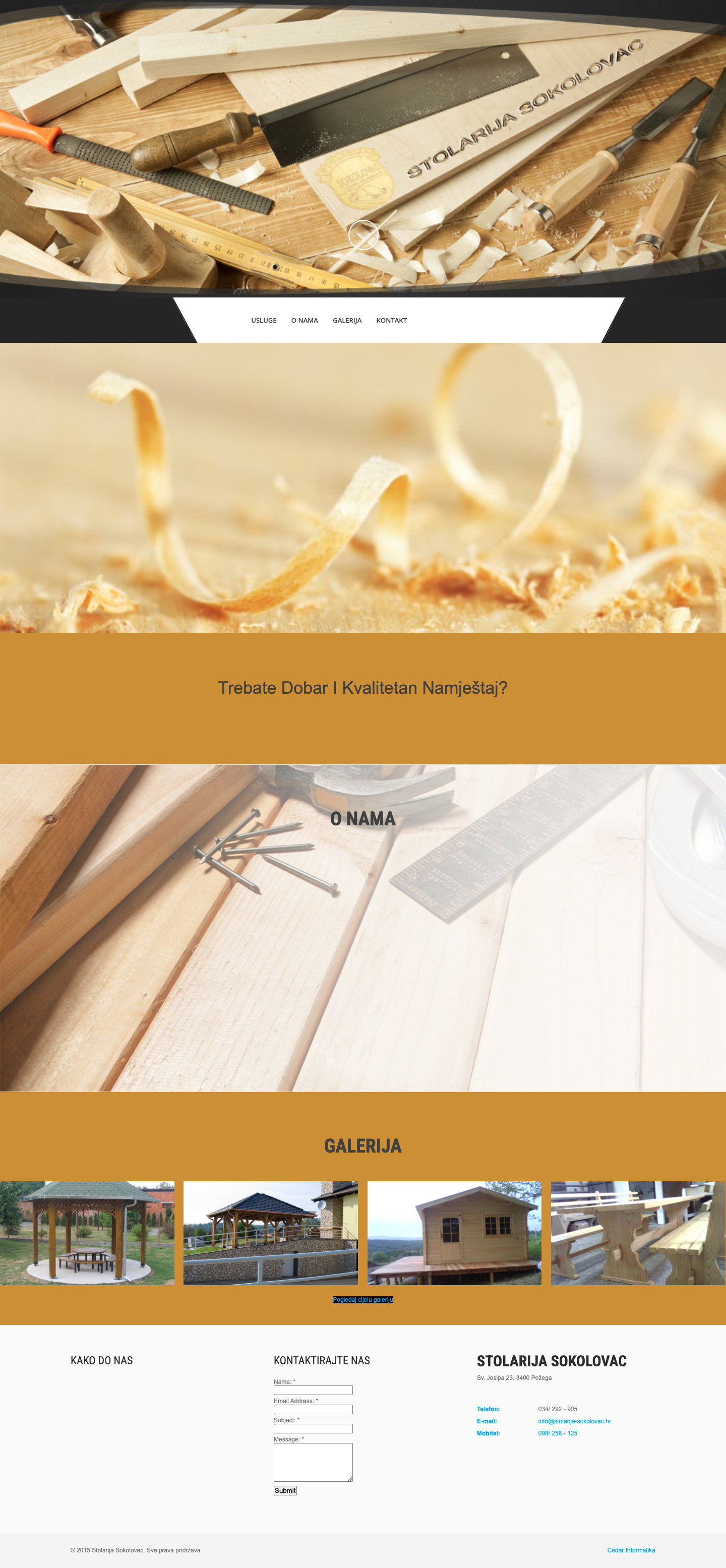 Možete nas kontaktirati na adresi Sv. Josipa 23, Požega, telefonski na 034/292-905 ili 098/256-125, ili emailom na info@stolarija-sokolovac.hr.
