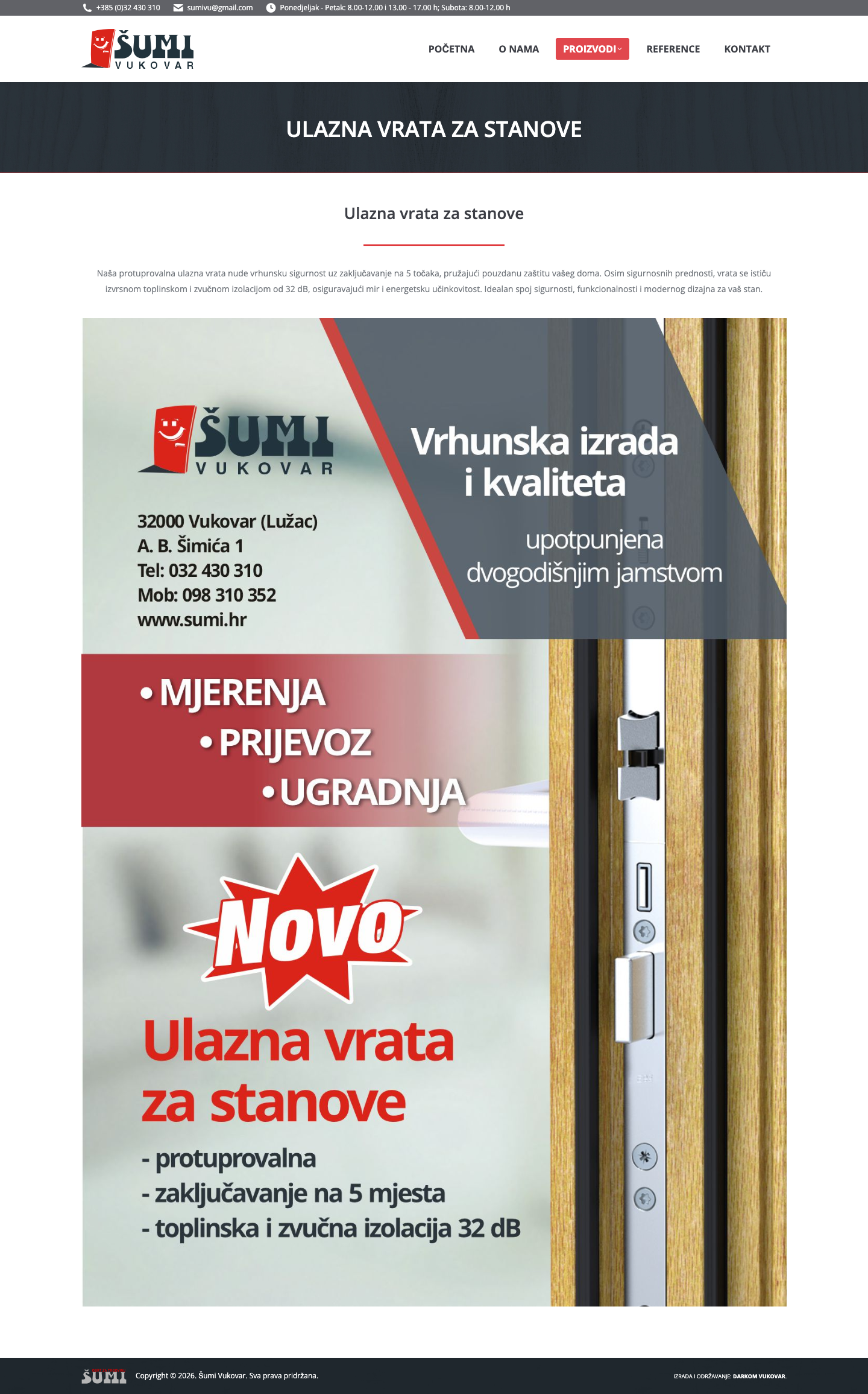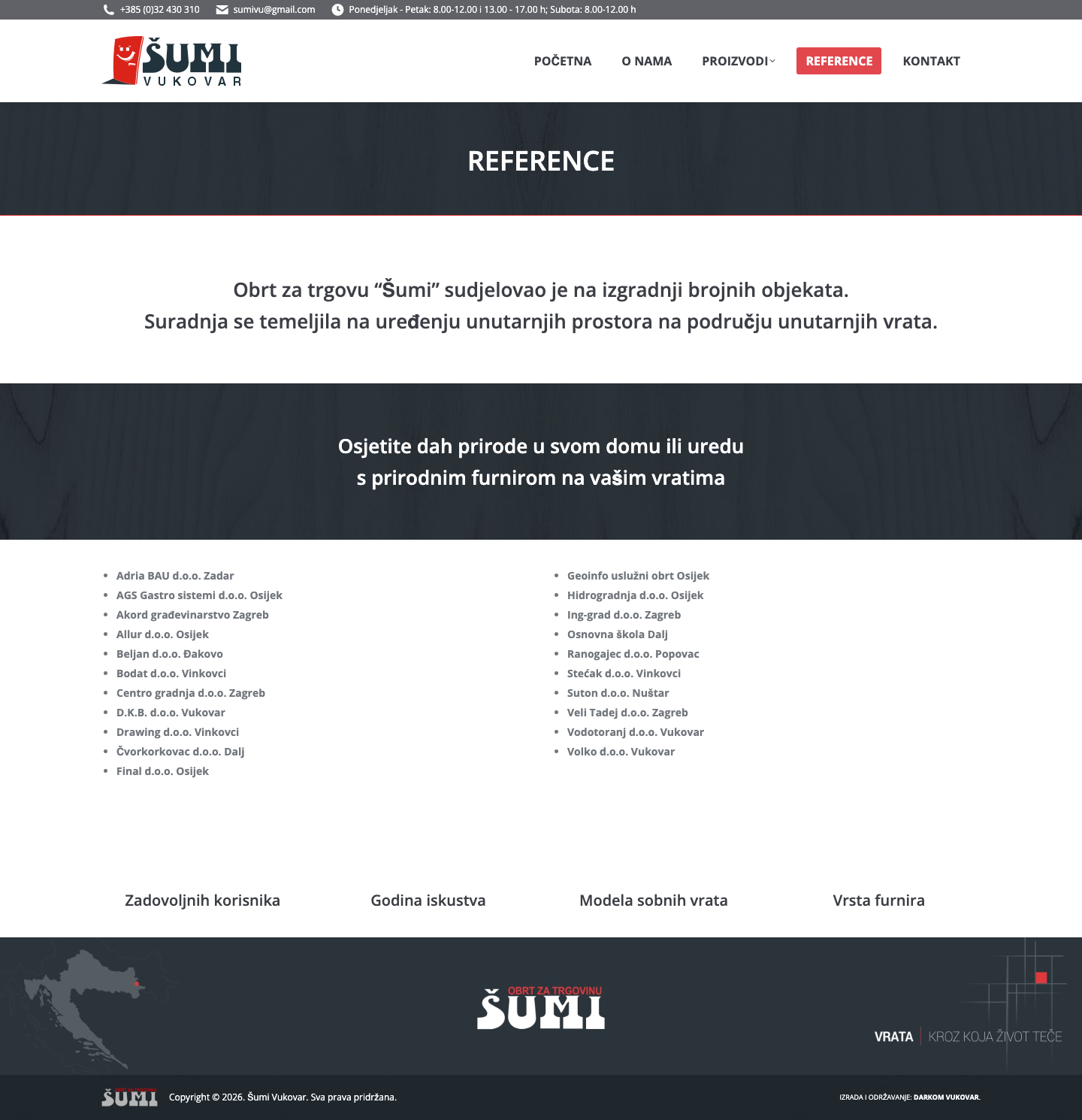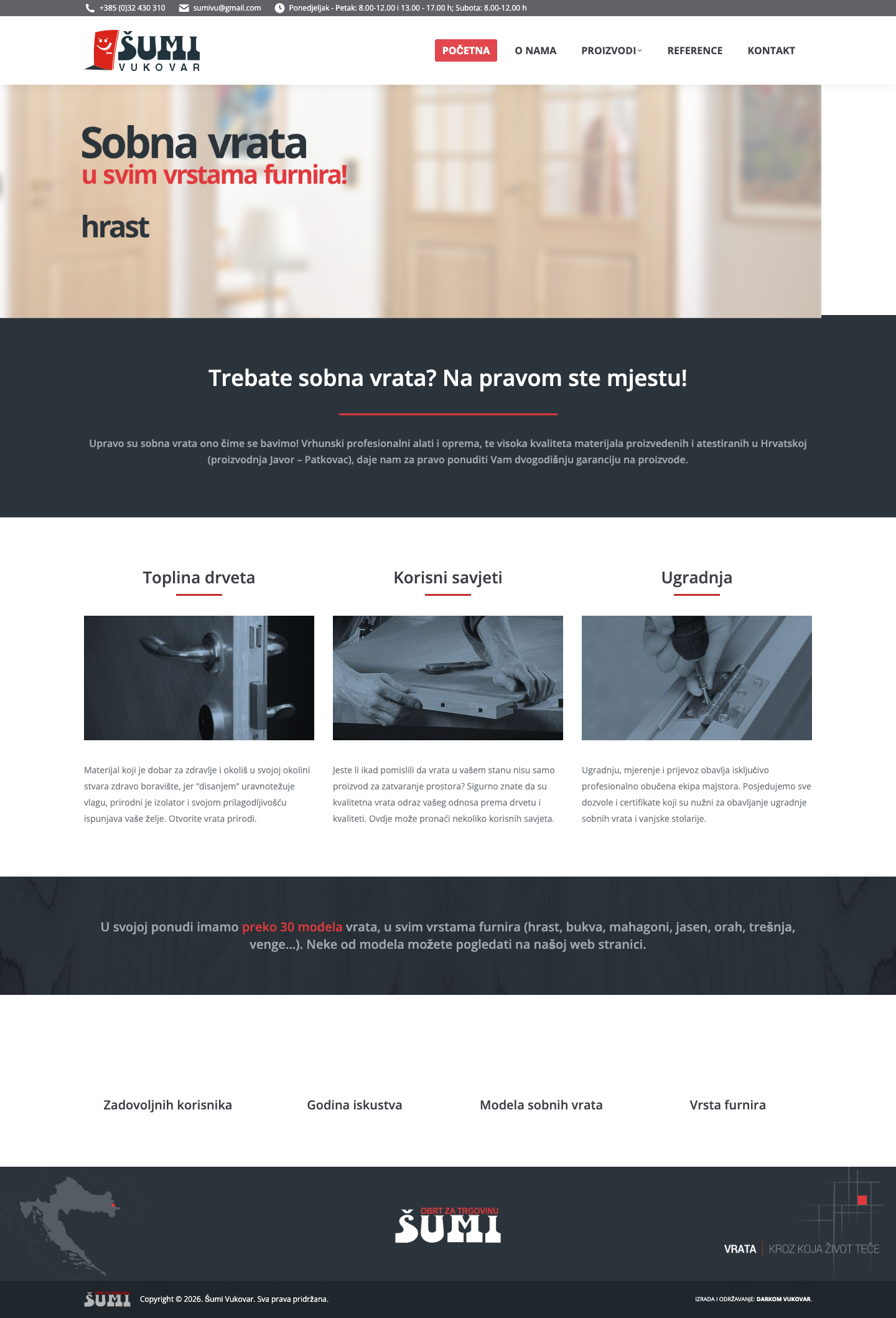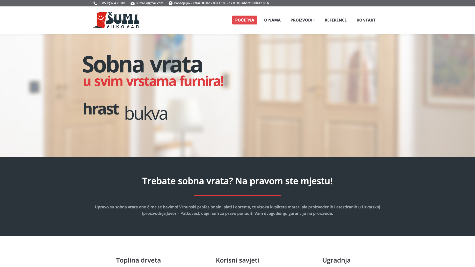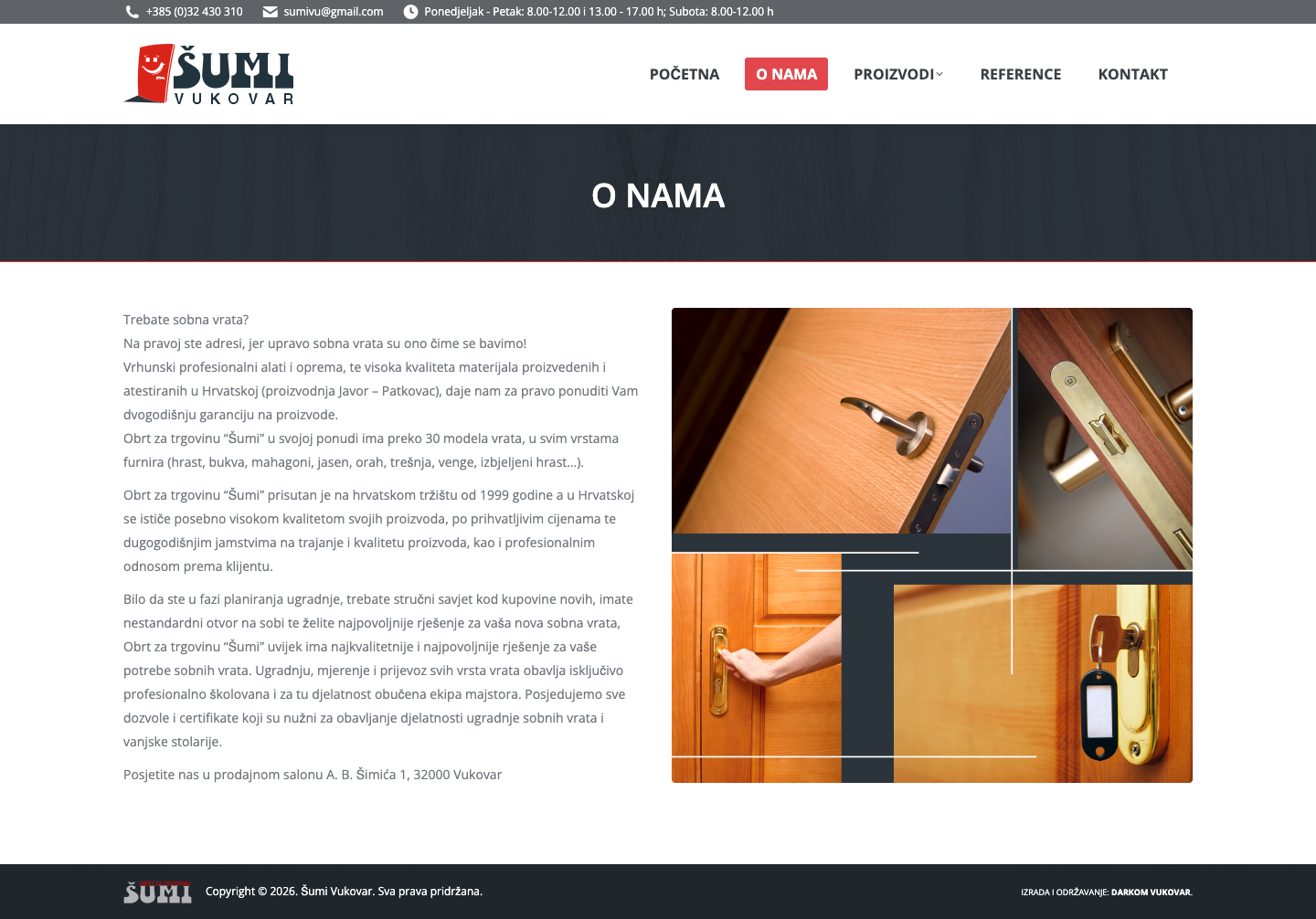 Šumi je specijalizirani obrt za trgovinu sobnim vratima koji djeluje od 1999.