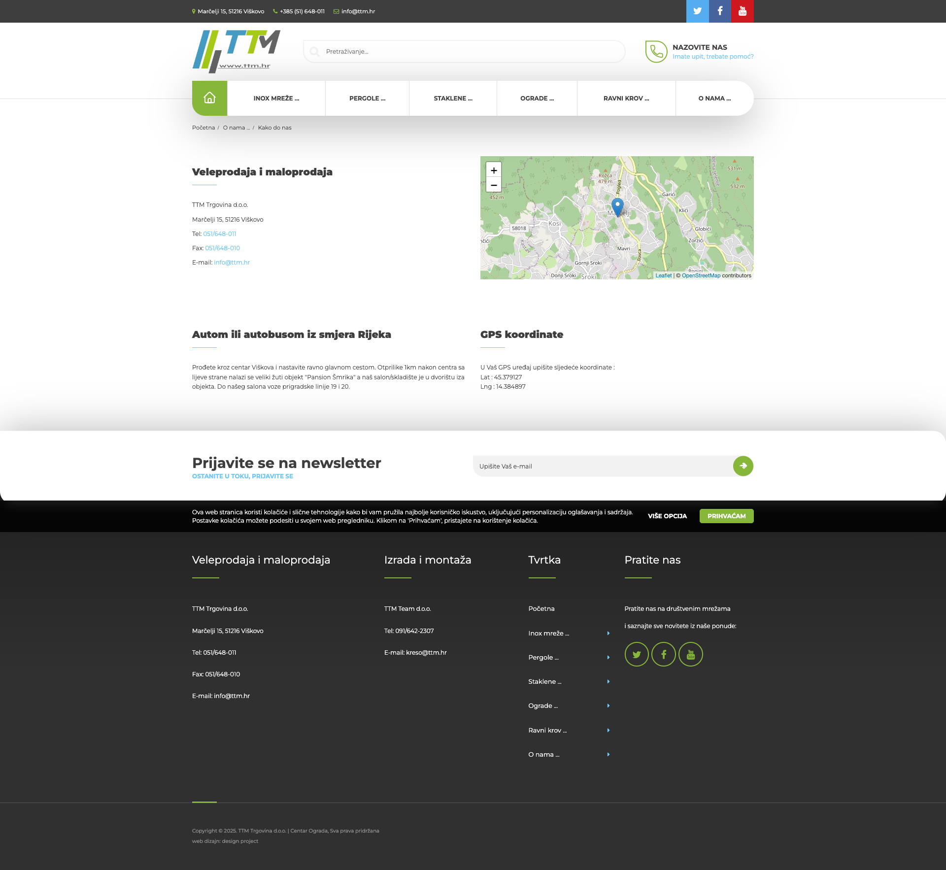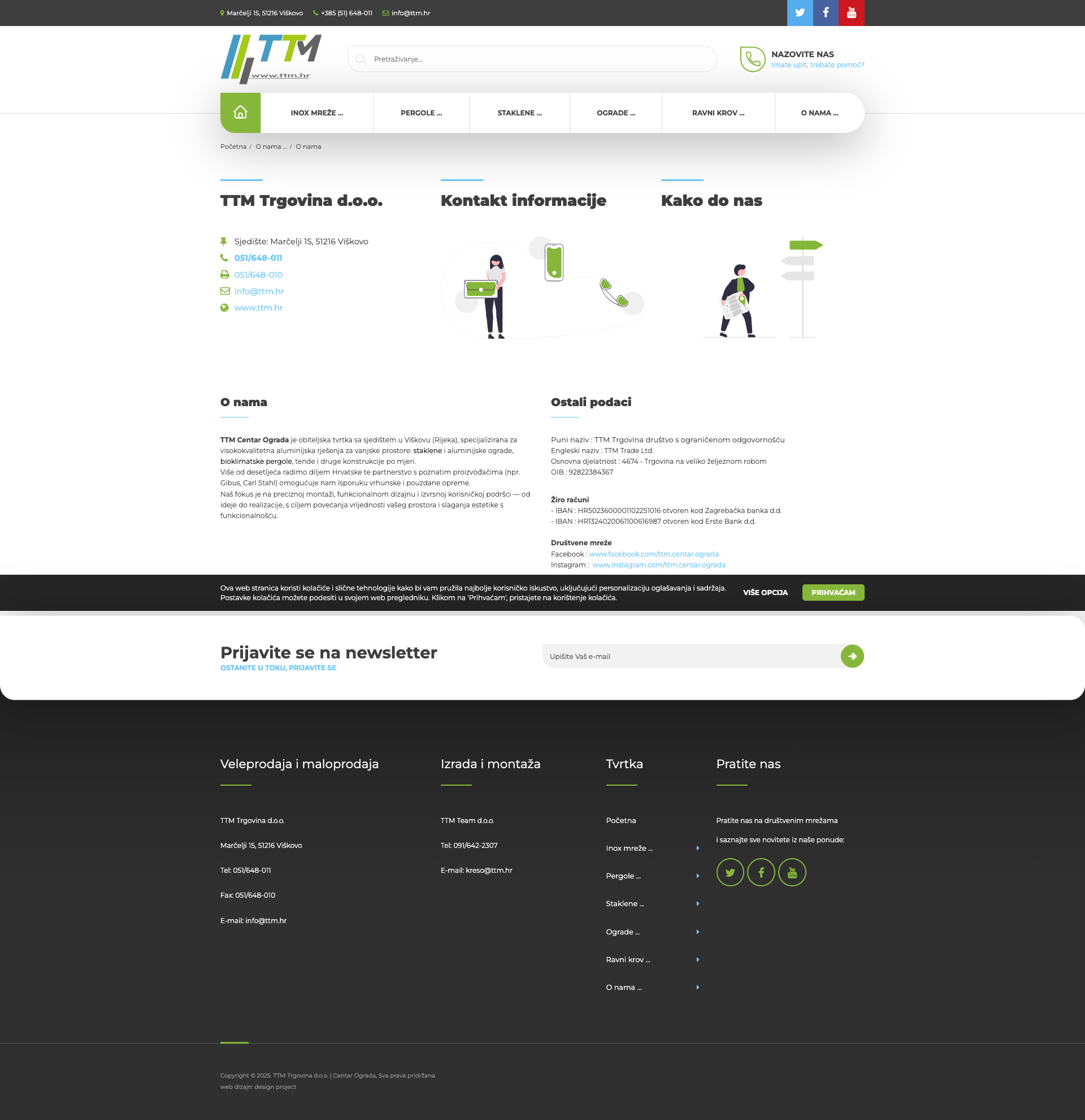 TTM Trgovina - Centar ograda, smještena u Marčeljima kod Viškova, Hrvatska, specijalizirana je za visokokvalitetna aluminijska rješenja za vanjske prostore. Tvrtka nudi staklene i aluminijske ograde, bioklimatske pergole i tende, s dugogodišnjim iskustvom u montaži diljem Hrvatske. Partnerstvo s renomiranim proizvođačima kao što su Gibus i Carl Stahl osigurava vrhunsku kvalitetu i pouzdanost.
